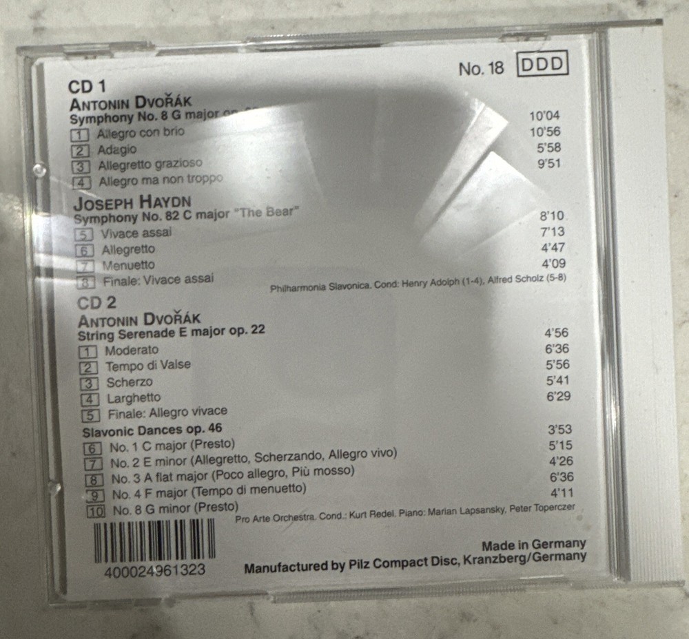 This CD features the works of renowned composer Antonín Dvořák, including his Symphony No. 8 and String Serenade. The CD is in near mint condition, allowing for optimal sound quality. With a focus on classical music, this CD is perfect for fans of symphonies and serenades alike. The genre of this CD is classical, and it falls under the category of music CDs on eBay. Add this beautiful CD to your collection today!