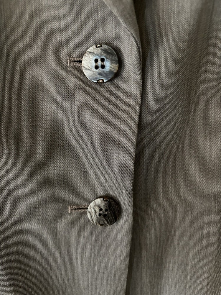 Elevate your wardrobe with the Antonio Melani tailored jacket, a versatile piece that seamlessly transitions from business to cocktail hours. The pewter color adds a touch of sophistication, while the polyblend outer shell ensures durability and a comfortable fit. Size 6 with a chest measurement of 36, this mid-length jacket is designed to flatter with a regular fit and tailored seams.Crafted with a softshell fabric, the jacket promises to keep you comfortable across seasons—fall, spring, and summer. Long sleeves, a classic button closure, and a solid pattern maintain a sleek, uncomplicated aesthetic. Ideal for those who appreciate a blend of glamour and leadership themes in their attire, this jacket requires dry clean care to maintain its sharp look.