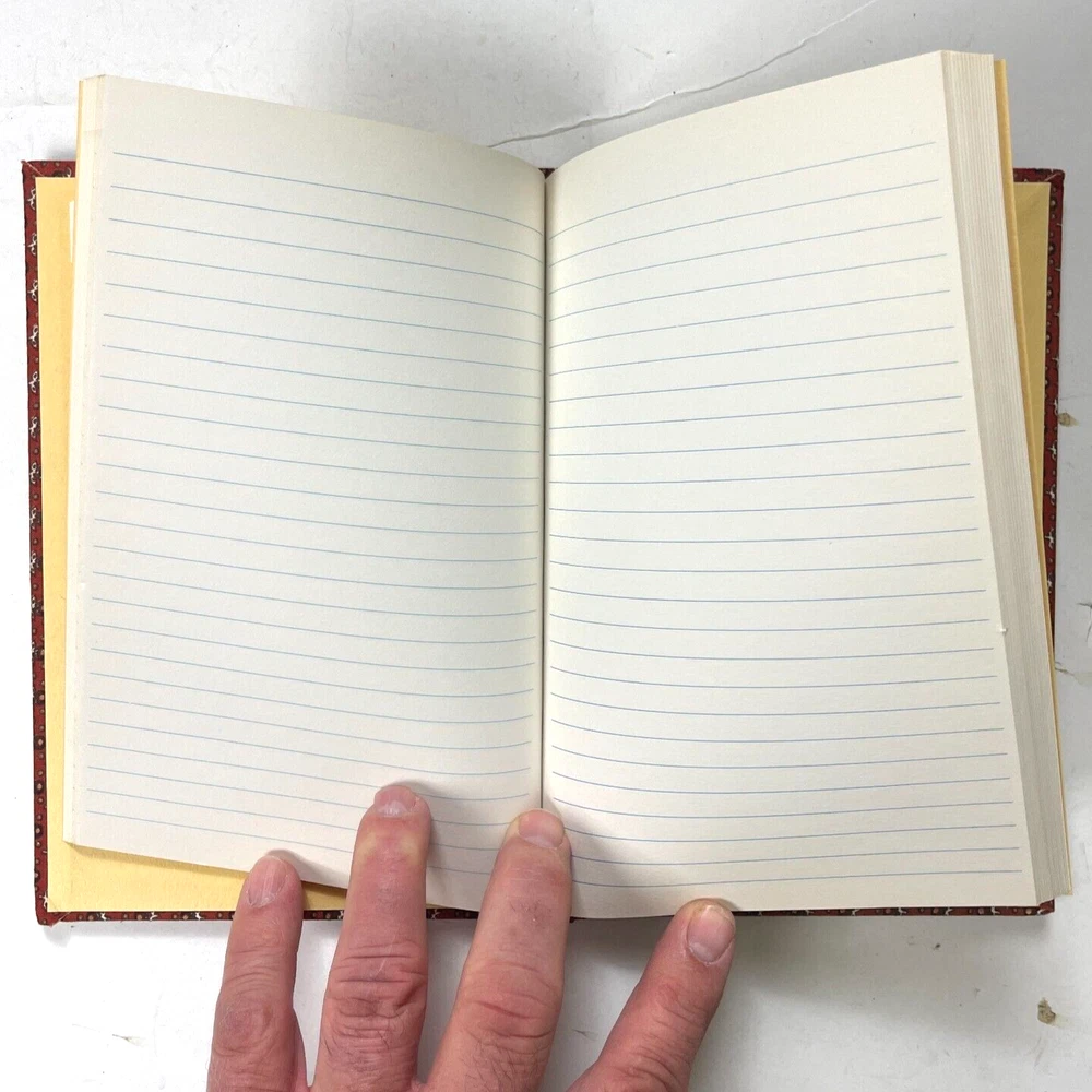 Vintage Blank Journal/Diary -Two (2) Item Bundle "Anything Book" fabric-covered/ w/orig 1980s Macys price tag on interior/ ruled pages Gold-Accented brown cover (moray pattern when light catches it at an angle; w/floral end papers/ un-ruled see pics for scale heavy- over 1Lb combined books are un-used, been in storage for several decades; only minor cosmetic wear/ brown covered one has a small surface abrasion within the front pages where a label was removed