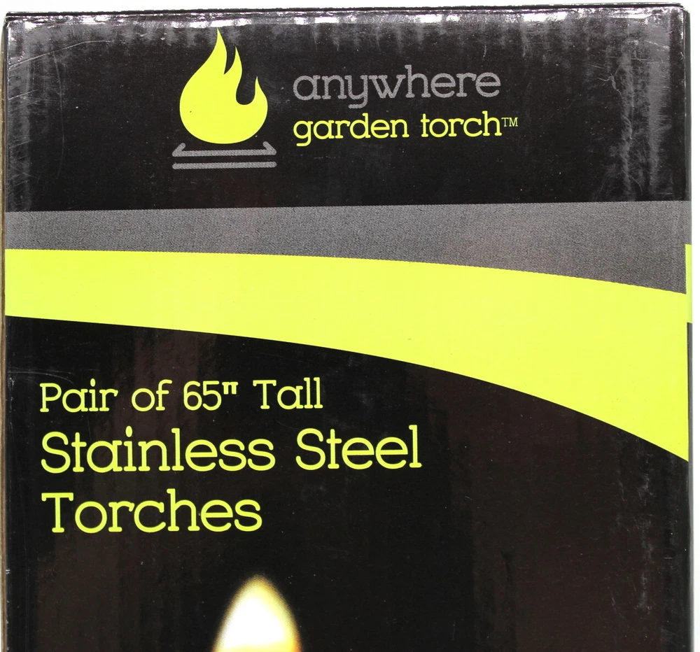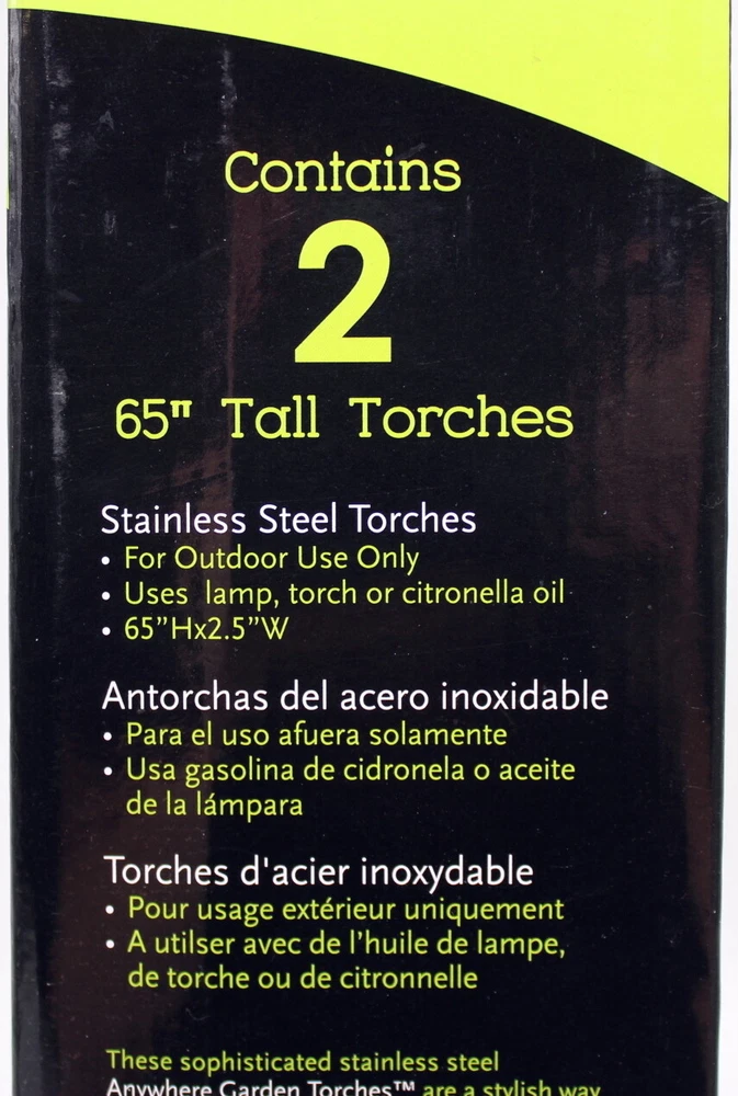 Anywhere Fireplace Tall Plated Stainless Steel Garden Torch Set of 2 New in Box