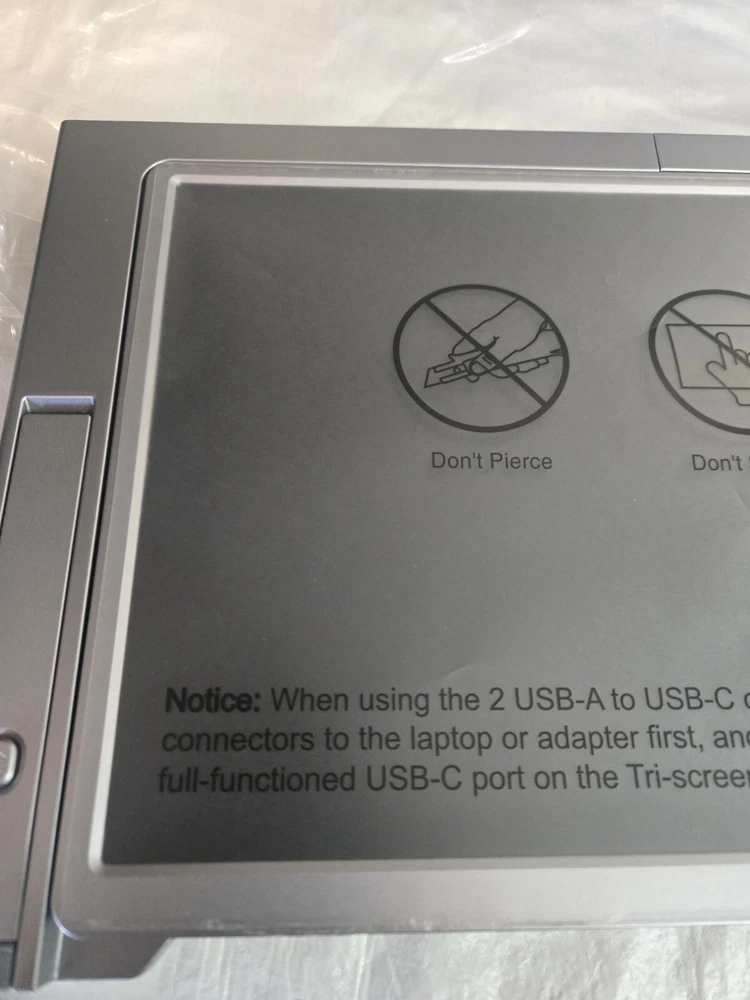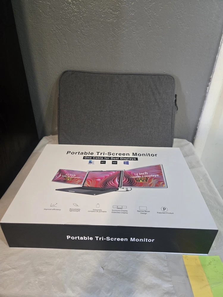 Open item to take picture Introducing the Apildella Portable Tri-Screen Monitor, a versatile device that allows you to connect to two displays with just one cable. The 14-inch screen size provides a clear and immersive viewing experience, while the gray color adds a touch of sophistication to your workspace. This portable monitor is perfect for professionals who require a high-quality display for their computers. Its features include a Tri-Screen technology that enables you to connect to two displays, making it ideal for multitasking and increasing productivity. The Apildella Portable Tri-Screen Monitor is a must-have for anyone who wants to enhance their work setup.
