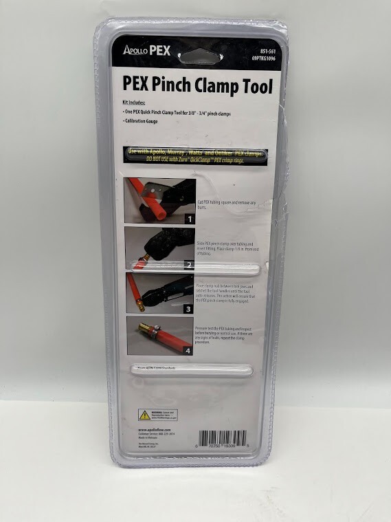 MPN: 69PTKG1096 Size: 3/4 in Brand: Apollo Seller Notes: “This is a NEW OPEN BOX item. Calibration gauge not included” Jaw Size: Maximum Pipe Diameter is 3/4 in. gtin13: 670750193095 Model: 69PTKG1096 Manufacturer Warranty: No warranty Number of Pieces: 1 UPC: 670750193095 Item Diameter: 3/4 in Type: Clamp Tool California Prop 65 Warning: Warning This product contains chemicals known to the state of California to cause cancer and birth defects or other reproductive harm. Further information available at - www.p65warnings.ca.gov Item Weight: 1.76 lb Color: Black Item Length: Compatible Pipe Sizes: 1/2 in., 3/4 in., 3/8 in. Country of Origin: Vietnam Material: Apollo 3/8 in., 1/2 in. and 3/4 in. PEX-B Quick-Cinch Clamp Tool Item Width: 6 in Personalize: No Item Height: 15.2 in