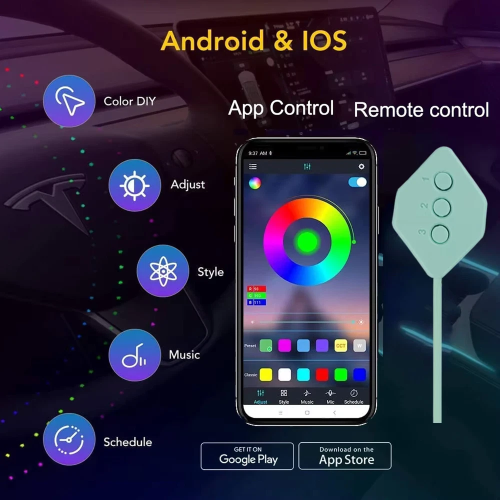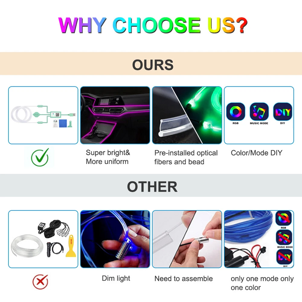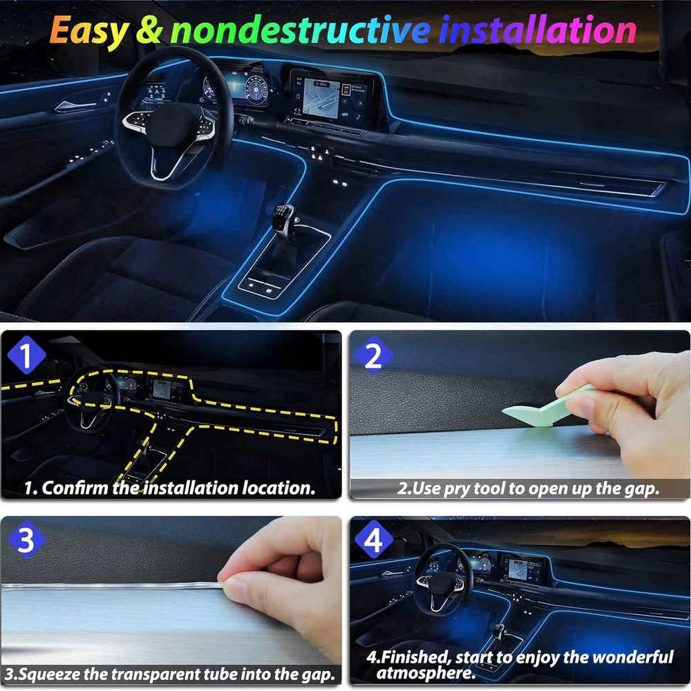 App-Controlled RGB Car Interior Ambient Light Fiber Optic EL Strip
