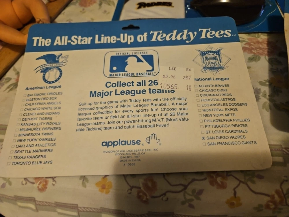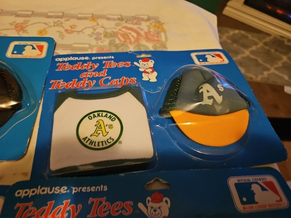 Color:Multi-ColorPlayer:n/aGender:teddy bearPre & Post Season:Regular SeasonLeague:Major League (MLB)Product:Teddy Bear Shirt and CapCapacity:N/ACountry/Region of Manufacture:ChinaTeam:Oakland AthleticsSize:Small Teddy Bear SizeModified Item:NoBrand:Applausegtin13:Does not applyUPC:Does not applySport:Baseball-MLB