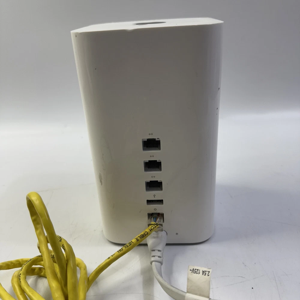 This Apple AirPort Extreme router is a top-of-the-line device that provides high-speed Wi-Fi connectivity for your home or office. With a sleek white design, it is compatible with the latest 802.11 AC standard and has three LAN ports for optimal connectivity. The device is perfect for streaming high-definition videos, playing online games, and transferring large files. The Apple AirPort Extreme router is easy to set up and use, making it ideal for both tech enthusiasts and non-technical users. It is a reliable device that delivers consistent performance, making it a great investment for anyone who needs fast and secure Wi-Fi connectivity.