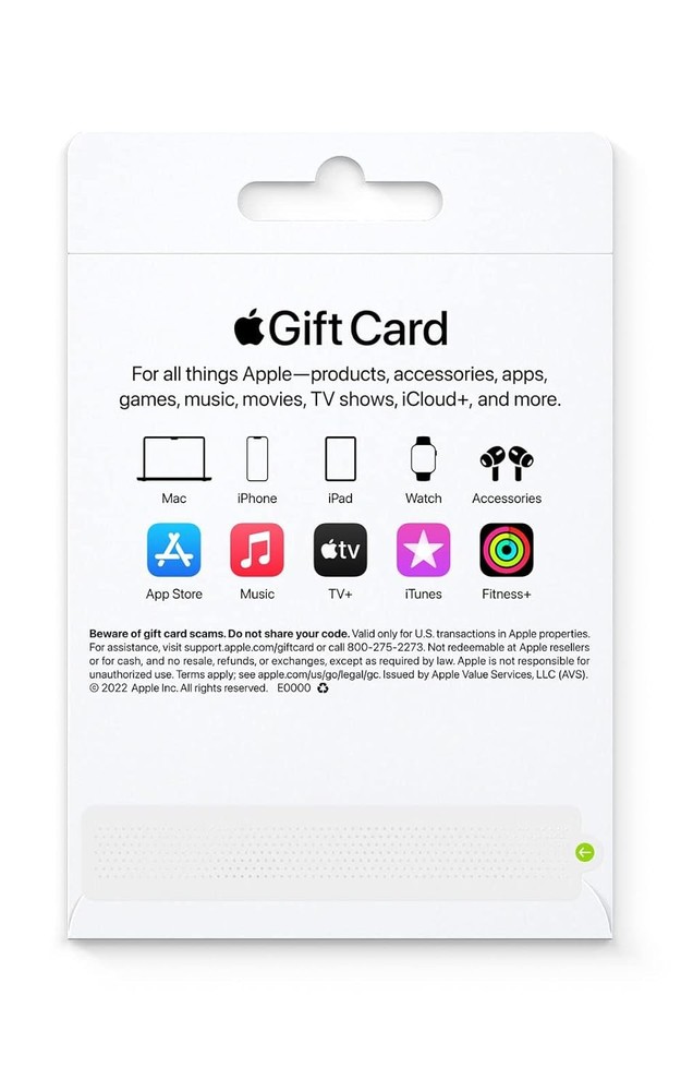 Apple Gift Card - App Store, iTunes, iPhone, iPad, AirPods, MacBook, accessories and more Product Details Package Dimensions : 8.86 x 3.27 x 0.28 inches; 0.63 ounces Item model number : VariableDenomination Manufacturer : Blackhawk Brand: Apple Manufacturer: Blackhawk For all things Apple — iPad, AirPods, Apple Watch, iPhone, MacBook, iCloud, accessories, and more Perfect for App Store purchases and subscriptions — get apps, games, music, movies, TV shows, and more The ideal gift to say happy birthday, thank you, congratulations, and more Available in $50-$500 Designs may vary Not valid for other payments No returns or refunds on Apple Gift Cards Use the Apple Gift Card to get products, accessories, apps, games, music, movies, TV shows, and more. Spend it on in-app content, books, subscriptions and even iCloud storage to secure files from all your Apple devices. This gift card does it all. And then some.
