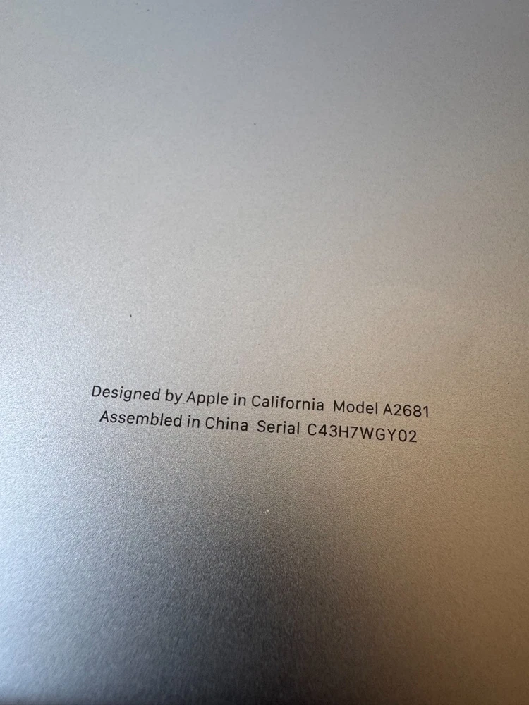 Seller Notes: “New - Open Box.” Color: Silver Storage Type: SSD (Solid State Drive) GPU: Apple 8-Core RAM Size: 8 GB SSD Capacity: 256 GB Release Year: 2022 MPN: A2681 Most Suitable For: Casual Computing, Gaming Series: Apple MacBook Air gtin13: 194253080411 Screen Size: 13.6 in Connectivity: DisplayPort, HDMI, USB-C Model: Apple MacBook Air A2681 UPC: 194253080411 Processor: Apple MacBook Air A2681 Features: Built-in Microphone, Built-in Speakers, Built-in Webcam, Wi-Fi Processor Speed: 3.50 GHz Brand: Apple Graphics Processing Type: Integrated/On-Board Graphics Maximum Resolution: 2560 x 1664 Country/Region of Manufacture: China