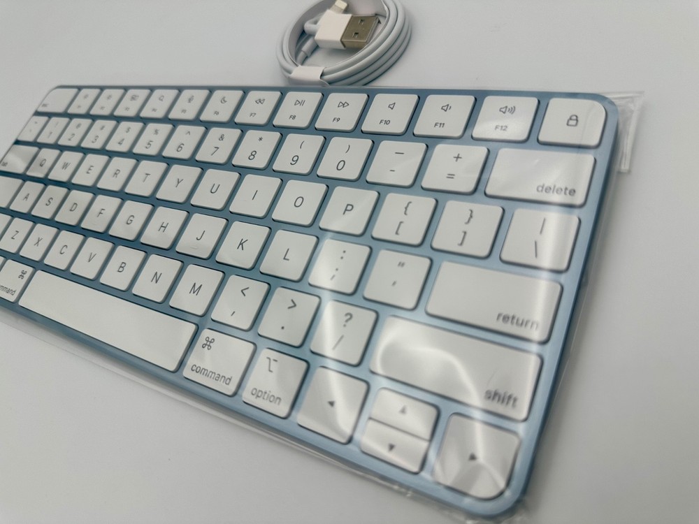 The Apple Magic Keyboard is a compact and sleek silver keyboard designed by Apple, featuring a QWERTY layout for standard English typing. With wireless connectivity options such as Bluetooth and Lightning, this keyboard offers convenience and flexibility for users looking to connect to their devices seamlessly. The Magic Keyboard by Apple is a reliable and high-quality option for those in need of a keyboard for their computing or typing needs.