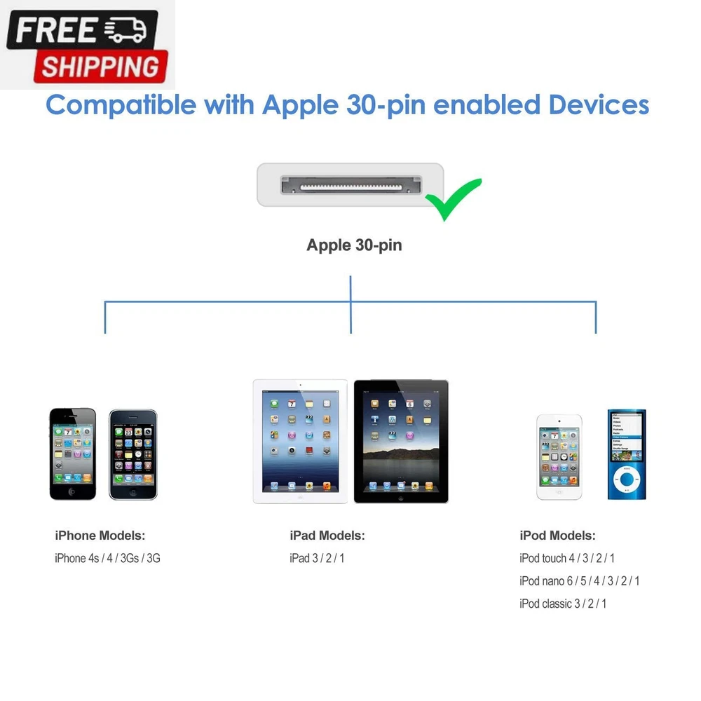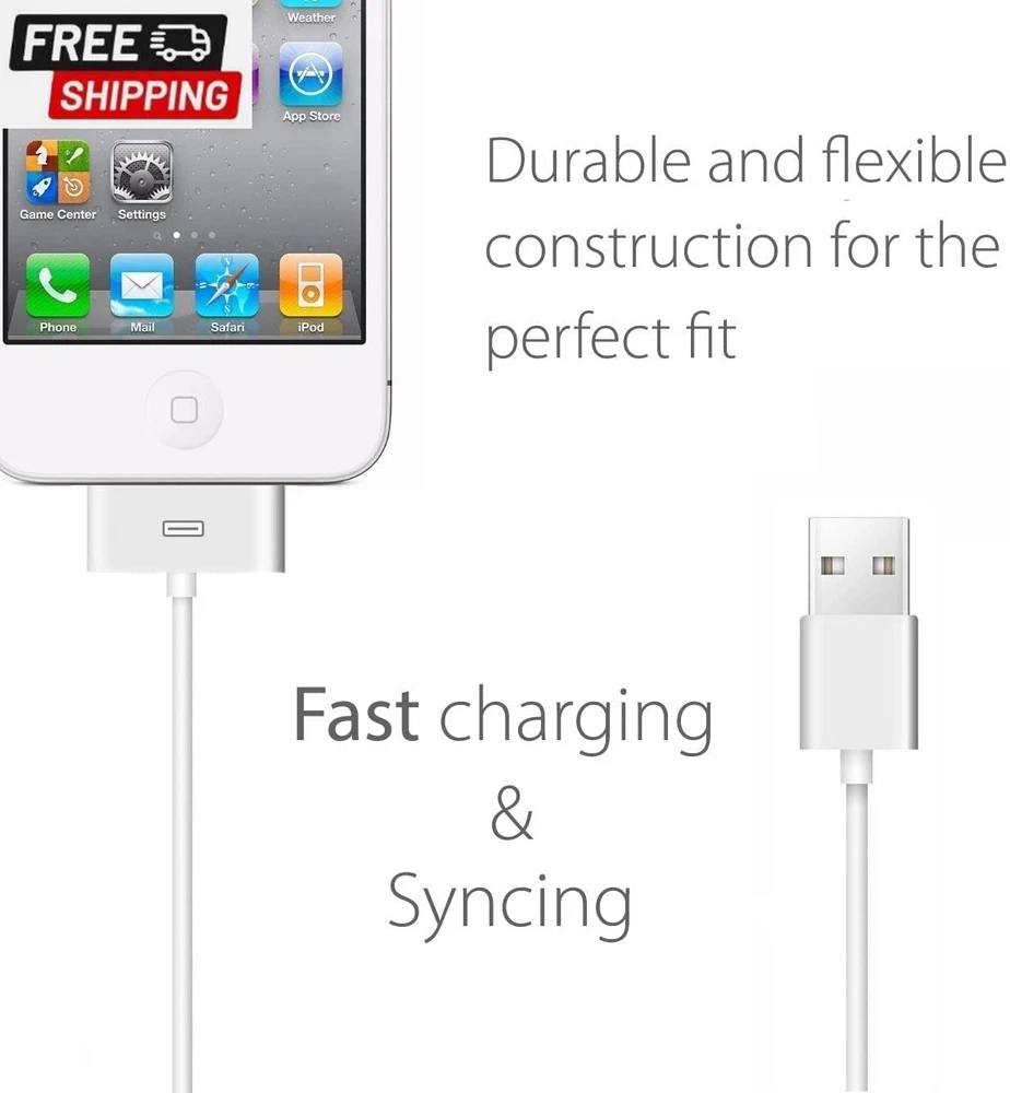 Store New Arrivals Add to Favorite View Feedback Contact [Apple Mfi Certified] 30-Pin to USB Cable for Iphone 4 Charging and Sync Data Connector Support for Iphone 4 4S, Iphone 3G 3GS, Ipad 3 2 1,Ipod Classic Ipod Touch Ipod Nano Description Cable Type USB Country of Origin China Connector Type 30-pin, Usb Compatible Devices Tablet, Charging Adapter, Smartphone Special Feature Data Transfer Package Dimensions 3.35 x 2.05 x 1.18 inches; 0.71 ounces ABOUT US We offer the best prices around on high quality products. Our E-store includes media such as books, movies, music and games while offering electronics, toys, sporting apparel, clothing, tools, general home, garden items and more. SHIPPING We are always working hard to ensure your package arrives as soon as possible. Please understand that some factors like weather, high postal traffic, and the performance of shipping companies are outside of our control. We offer free shipping to the lower 48 states and ship within 2 business days of payment, usually sooner. We do not accept P.O. Boxes. Please provide a physical address. For shipping outside of the continental USA, we only use eBay's Global Shipping Program.The item is shipped to KY and then sent to the rest of the world. International customers are responsible for all duties and taxes. Continue to check out in order to calculate costs for shipping the item to your country. Messages regarding eBay's Global Shipping Program MUST be directed at eBay EXCLUSIVELY. RETURNS We offer a 30-Day Return Policy on items which you are not completely satisfied with. You have the option for a full-refund or an exchange of the item. No returns are available on items shipped outside of the USA. PAYMENT We accept PayPal. CONTACT US This page content is yet to come Please ad us to your favorite seller and visit again later Thank You CUSTOMER SATISFACTION We try our very best to make sure every customer is completely satisfied. If there's a problem, message us! We're happy to help. WE ACCEPT https://www.ebay.com/str/ysrastore