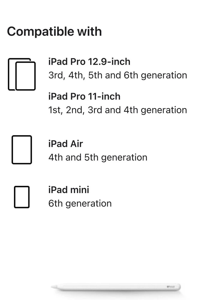 Apple Pencil (2nd Generation) - White. Excellent condition. Buy from a trusted 100% Feedback Seller No packaging - used. Overview: Apple Pencil (2nd generation) delivers pixel-perfect precision and industry-leading low latency, making it great for drawing, sketching, colouring, taking notes, marking up PDFs and more. And it’s as easy and natural to use as a pencil. Apple Pencil (2nd generation) also allows you to change tools without setting it down, thanks to its intuitive touch surface that supports double-tapping. Designed for iPad Pro, iPad Air and iPad mini, it features a flat edge that attaches magnetically for automatic charging and pairing. Compatibility: iPad Models iPad Pro 12.9-inch (6th generation) iPad Pro 12.9-inch (5th generation) iPad Pro 12.9-inch (4th generation) iPad Pro 12.9-inch (3rd generation) iPad Pro 11-inch (4th generation) iPad Pro 11-inch (3rd generation) iPad Pro 11-inch (2nd generation) iPad Pro 11-inch (1st generation) iPad Air (5th generation) iPad Air (4th generation) iPad mini (6th generation) Listing and template services provided by inkFrog
