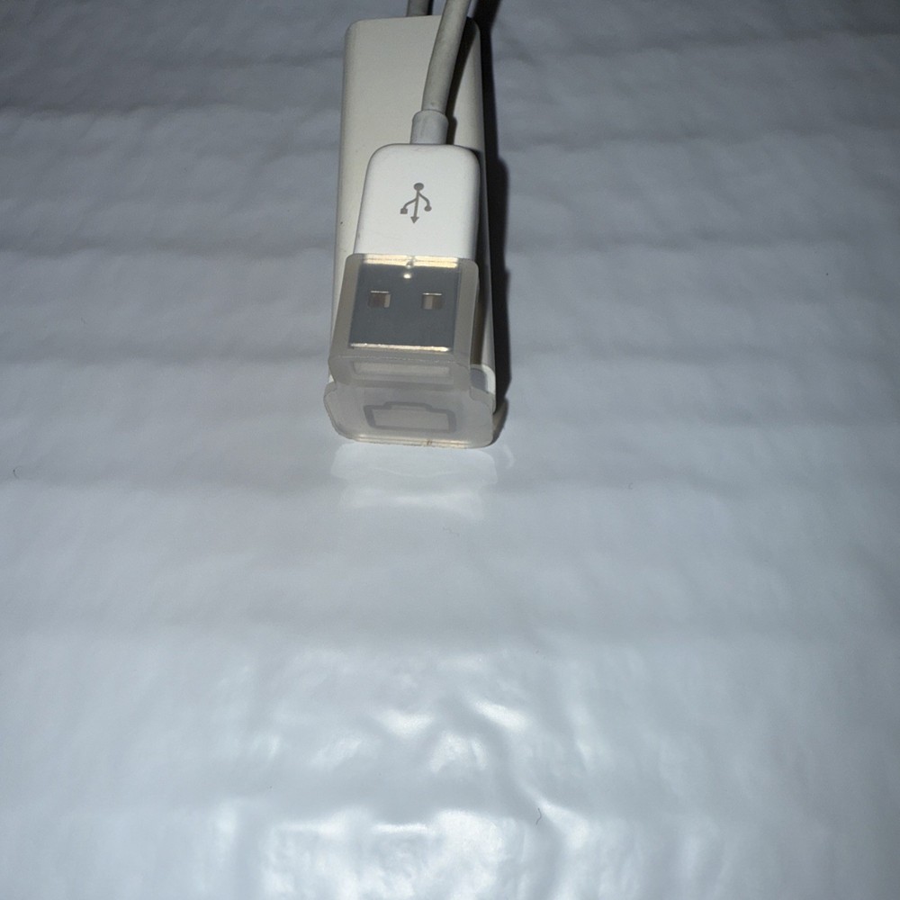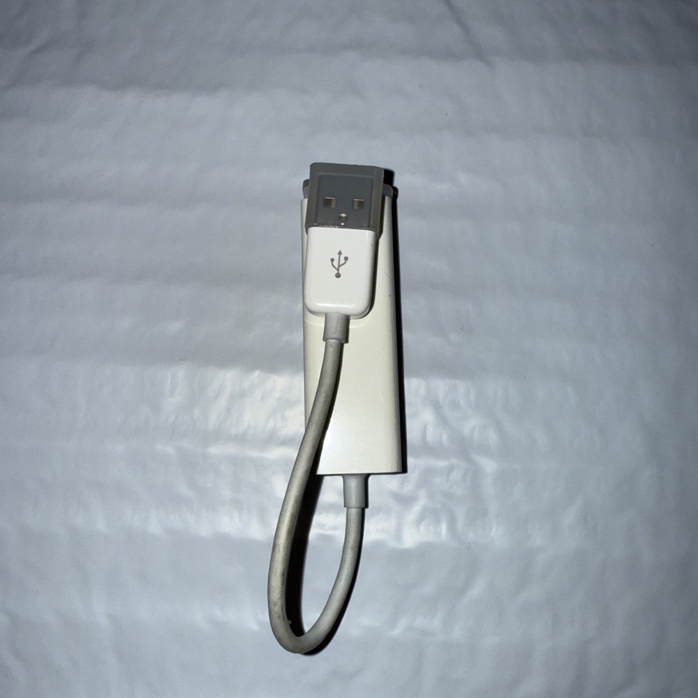 The Apple USB 2.0 Ethernet Adapter in white is a portable adapter designed for Apple devices. It features a retractable round cable, making it easy to store and transport. With an output voltage of 5V, this adapter is compatible with various Apple models and is perfect for connecting to Ethernet networks or other devices. The sleek design and reliable performance make it a convenient accessory for Apple users.
