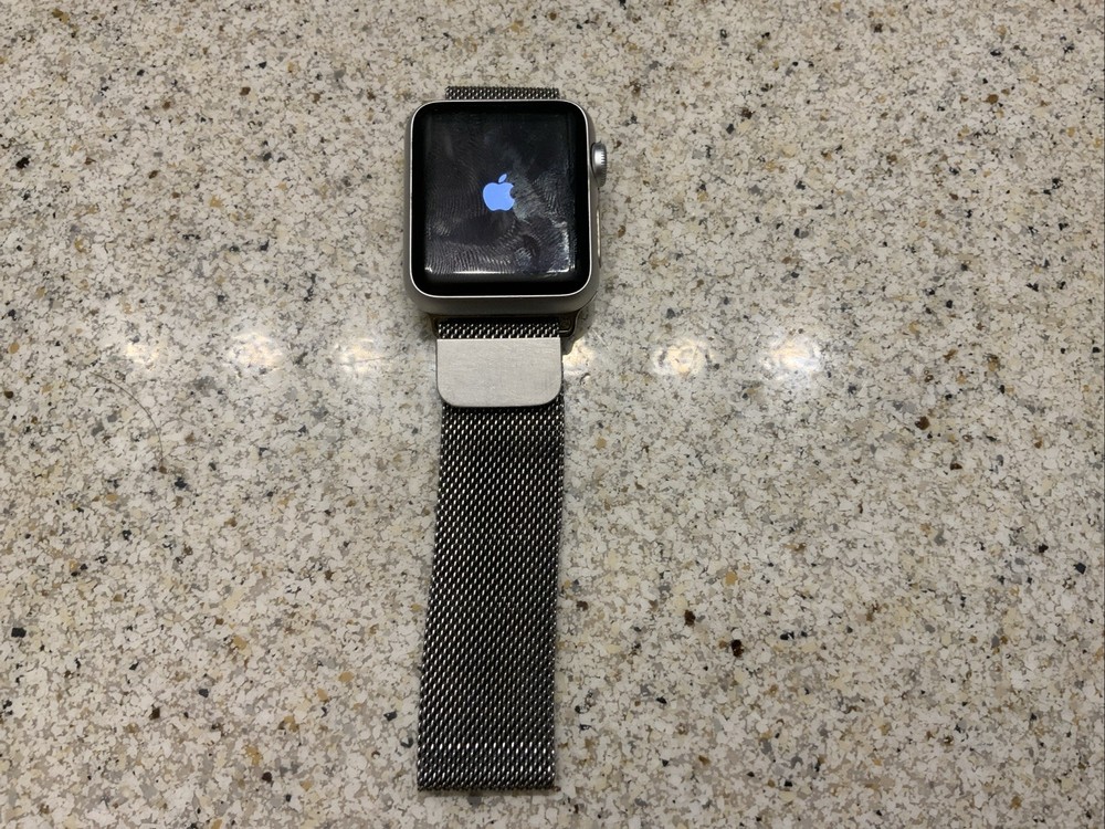The Apple Watch Series 1 38mm in Rose Gold with a Pink Sand Sport Band is a stylish and functional smartwatch designed for fitness enthusiasts. With features such as a fitness tracker, touchscreen display, sleep monitor, and heart rate monitor, this watch helps you stay on top of your health and fitness goals. The durable aluminum case and water-resistant design make it suitable for everyday wear, while the 8GB storage capacity ensures you have enough space for your favorite apps and music. Compatible with iOS devices, this Apple Watch Series 1 is a must-have accessory for those looking to enhance their workout experience. Powers on, but does not work. Parts only