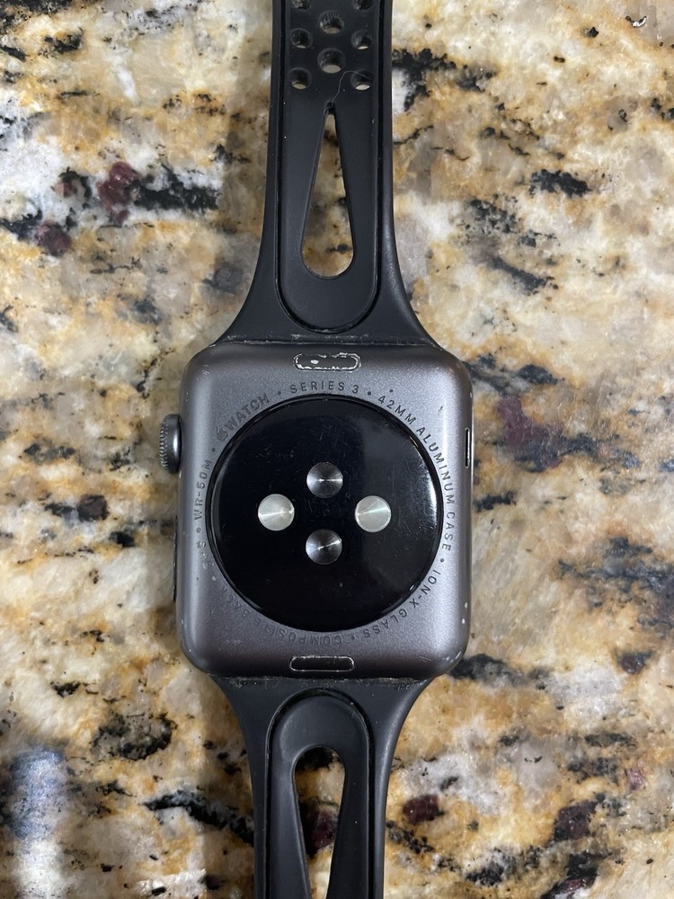 Apple Watch Series 3 42mm with black band. Please message for more details, thank you!