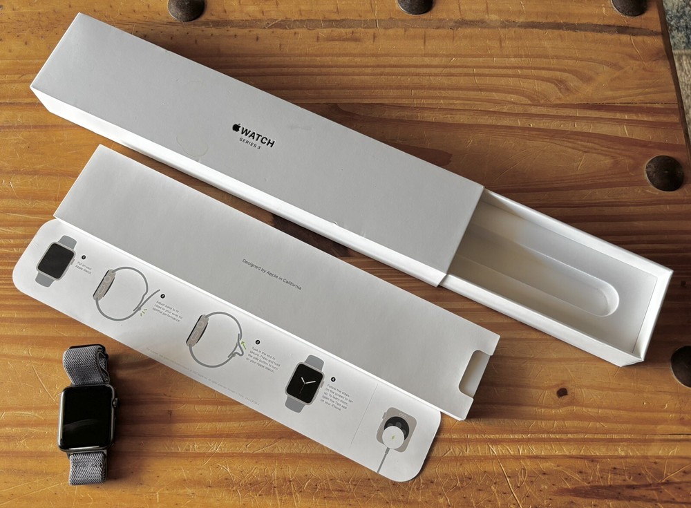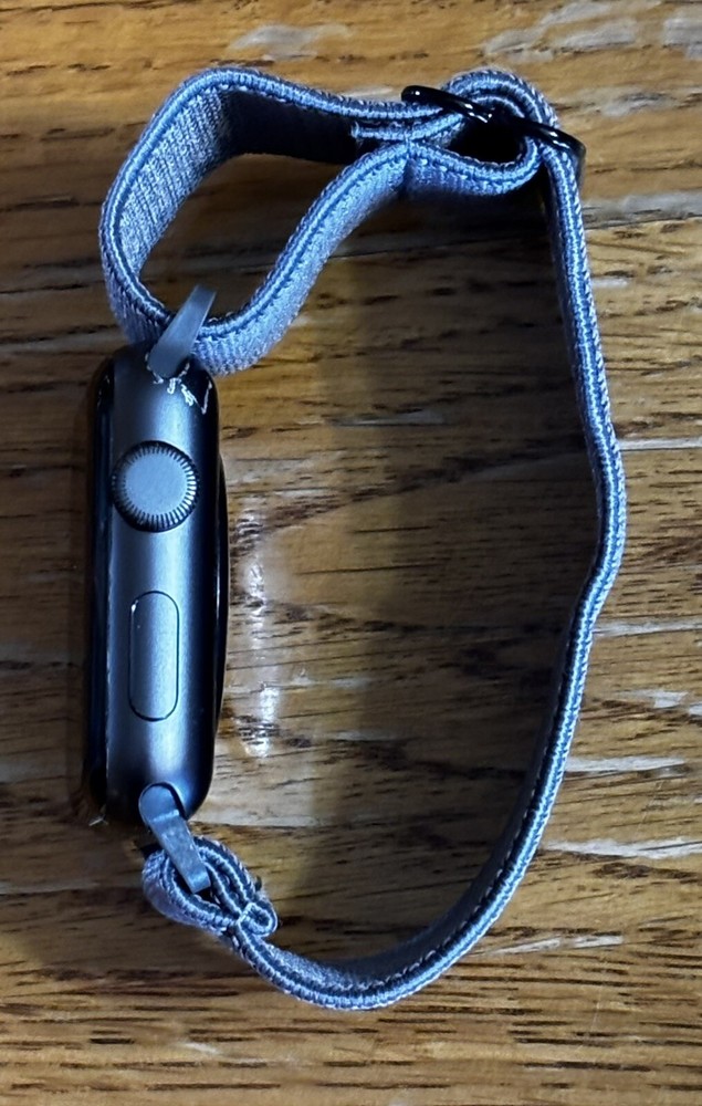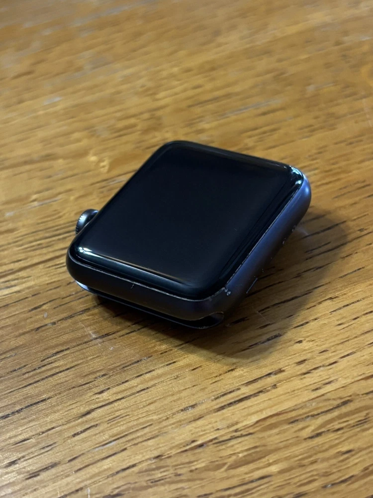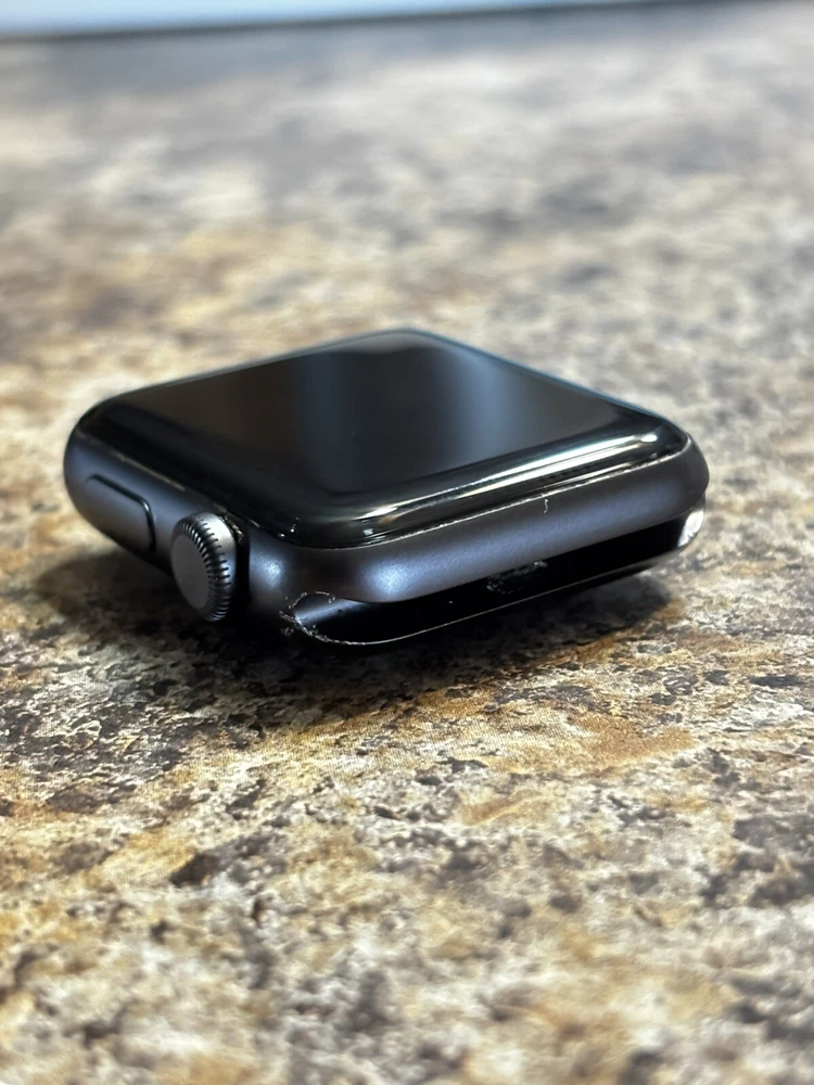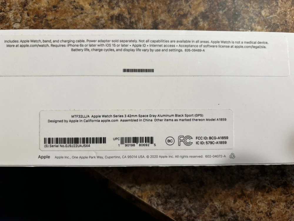 Apple Watch Series 3 42mm. Model MTF32LL/A space grey (GPS). Shows wear so please view photos for condition. Tested, works, and is reset for new user. Comes with original box and brand new, stretchy grey band. Smoke-free home. Sells as-is with no returns.