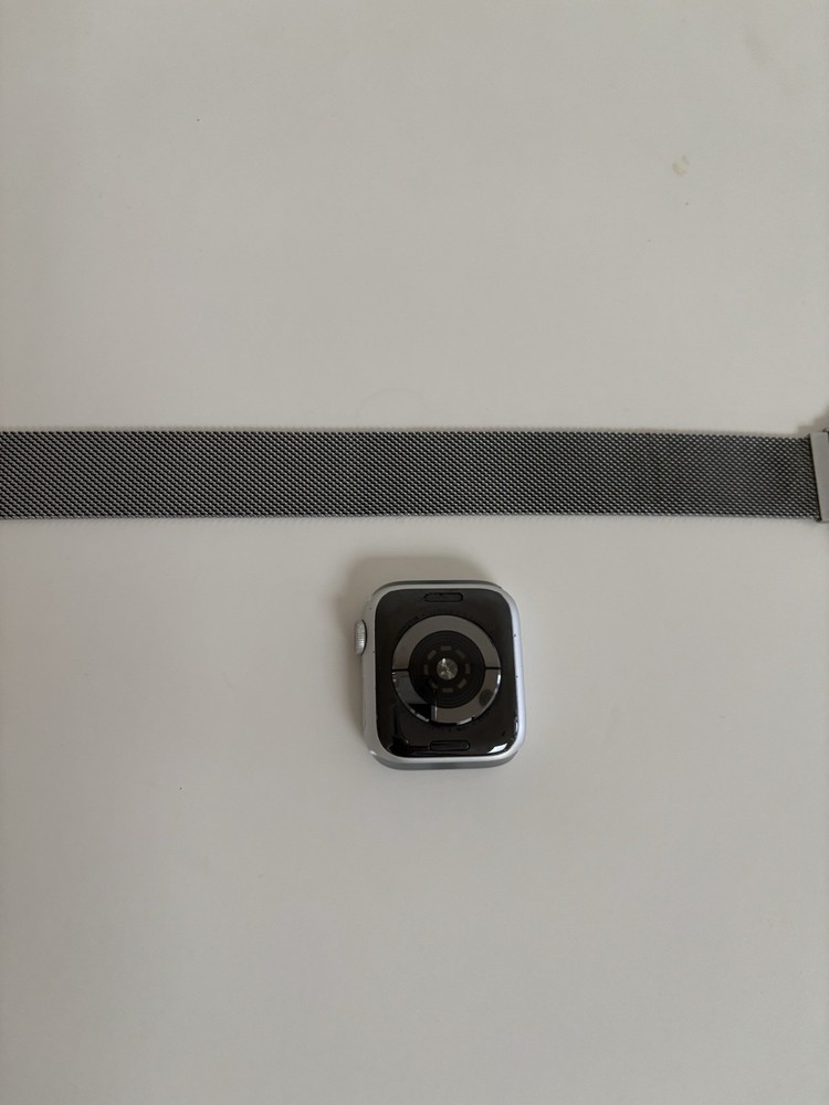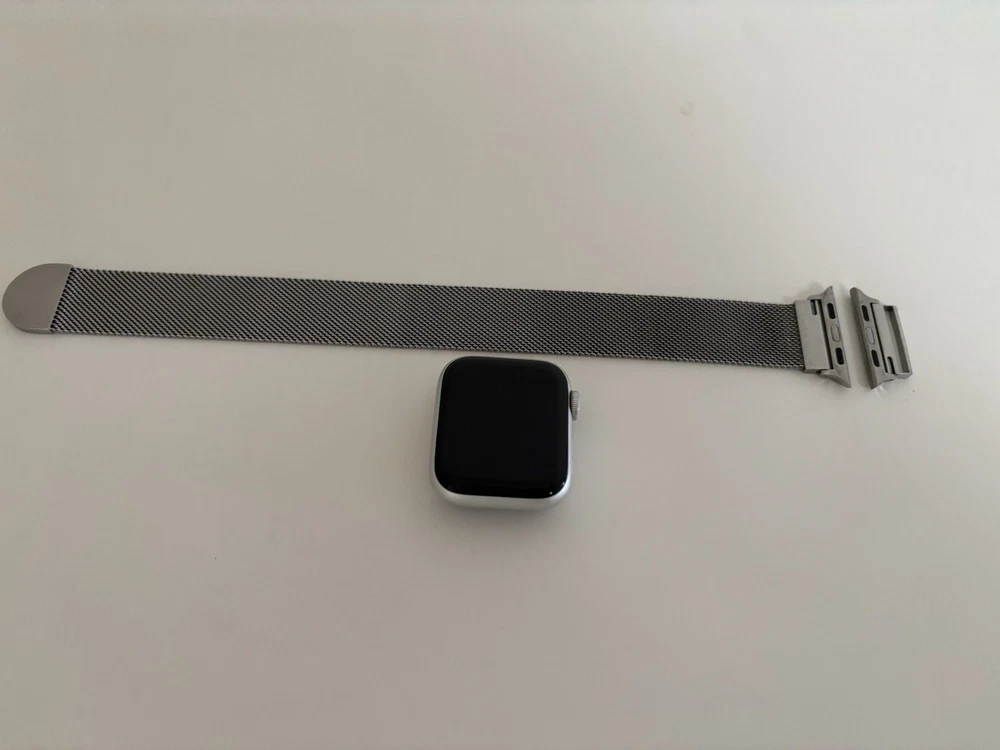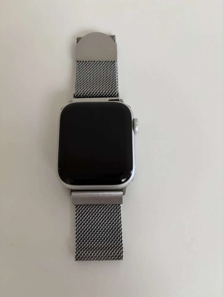 Apple Watch Series 5 featuring a 40mm aluminum case with GPS + Cellular capability. This model includes the always-on Retina display and is compatible with iPhone (requires cellular plan for standalone cellular use). The watch is paired with a stainless steel Milanese Loop band, offering a sleek, adjustable fit suitable for everyday wear or dressier occasions. • Model: Apple Watch Series 5 • Case Size: 40mm • Connectivity: GPS + Cellular • Case Material: Aluminum • Band: Milanese Loop (mesh metal, stainless steel Milanese, adjustable) • Display: Always-On Retina • Compatibility: iPhone (cellular plan required for cellular features) • Operating System: watchOS (upgradable subject to Apple support) Condition: Very good pre-owned condition. Watch powers on normally. Screen appears clean with light, normal signs of use consistent with age. Band is in good condition and functions properly. Please review photos for cosmetic details. Included: • Apple Watch Series 5 (40mm) • Milanese Loop band (No charger or original box included.) This is a solid option for fitness tracking, notifications, calls, and everyday smartwatch use at a more affordable price point than newer models.