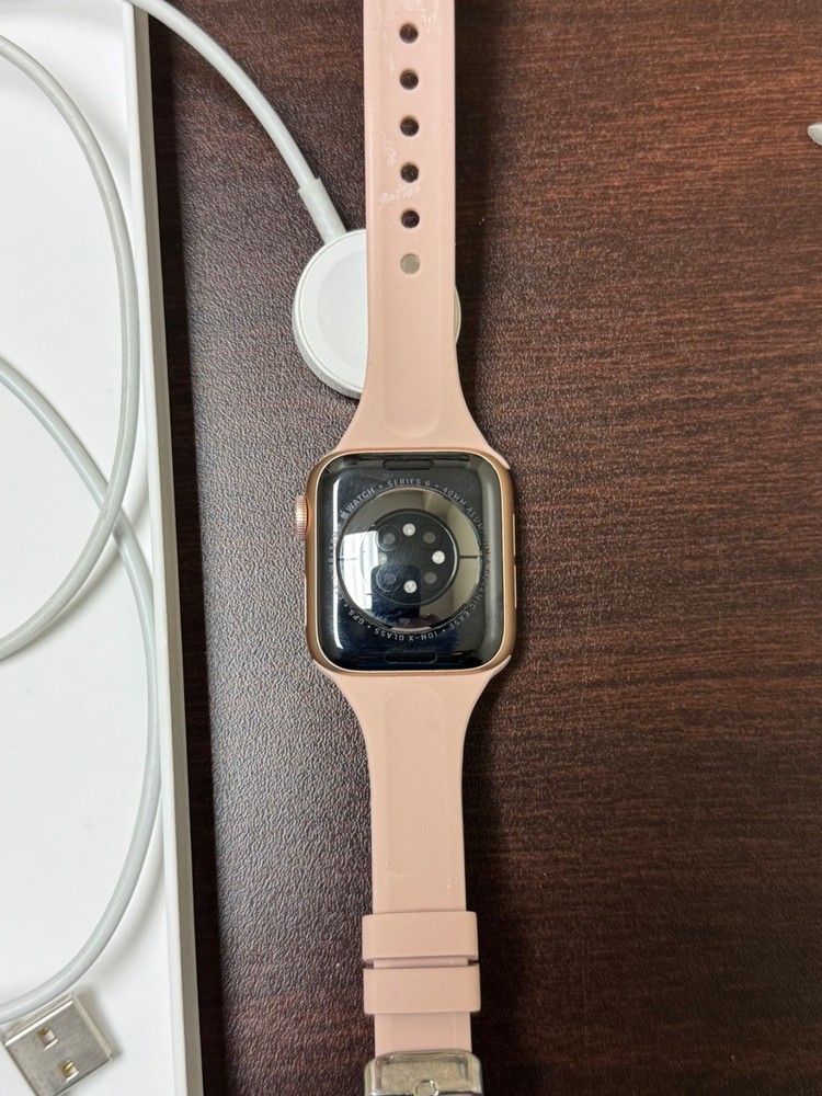 The Apple Watch Series 6 40mm GPS+Cellular Data is a stylish and functional smartwatch designed by Apple. With a sleek aluminum case and a comfortable pink band, this watch is perfect for those who want to stay connected on the go. The GPS feature allows users to track their location and fitness goals, while the cellular data capability ensures they can stay connected wherever they are. Compatible with iOS, this Apple Watch Series 6 offers a range of features to enhance the user's daily routine and overall health.
