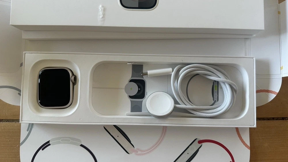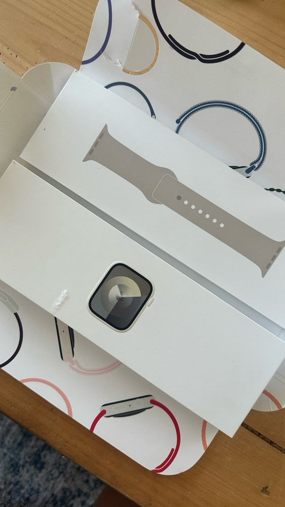 Band Color: Beige Case Material: Aluminum Operating System: Apple Watch OS Network: Unlocked Brand: Apple Model: Apple Watch Series 9 Series: Apple Watch Series 9 Case Color: Beige Case Size: 41 mm Storage Capacity: 64 GB Manufacturer Warranty: 2 Years Seller Notes: “Practically brand new used for less than 2 months” Band Material: Fluoroelastomer MPN: MR8T3LW/A Features: Fall Detection Compatible Operating System: iOS - Apple
