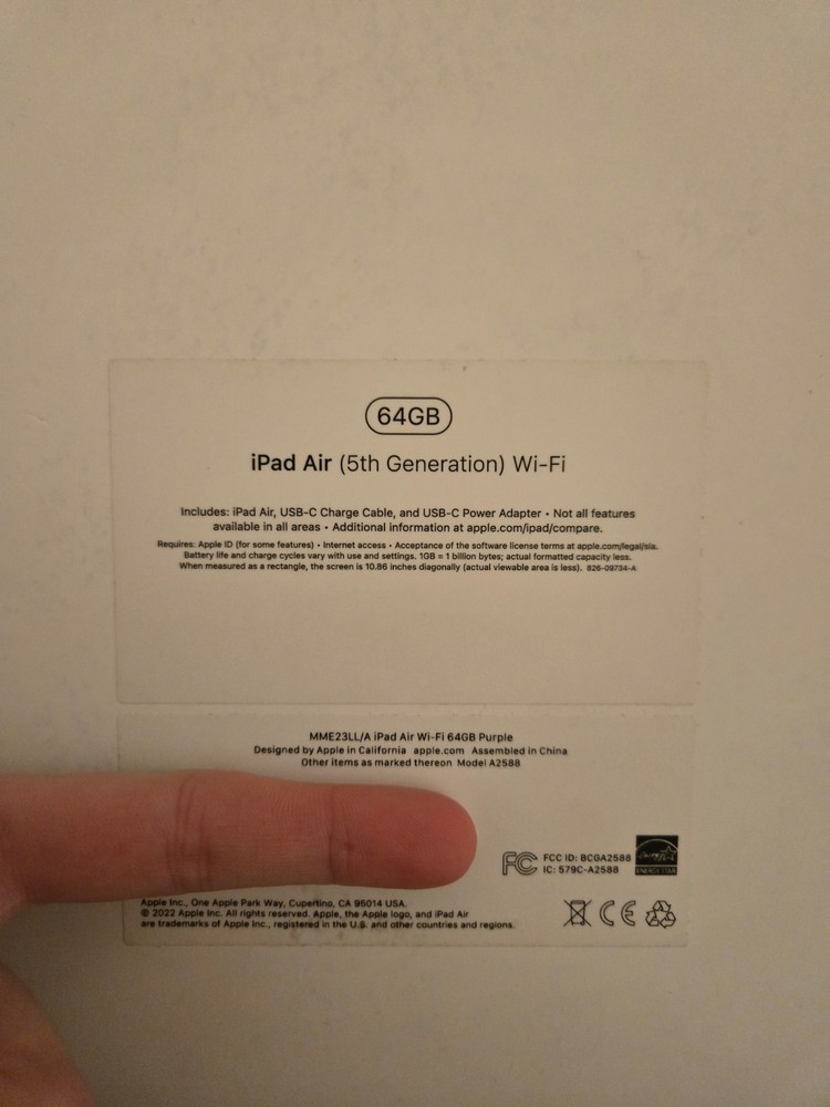 Used iPad Air 5th Generation - 64Gb Purple - used a few times, but in near-perfect condition. Comes with the original box, but no accessories.