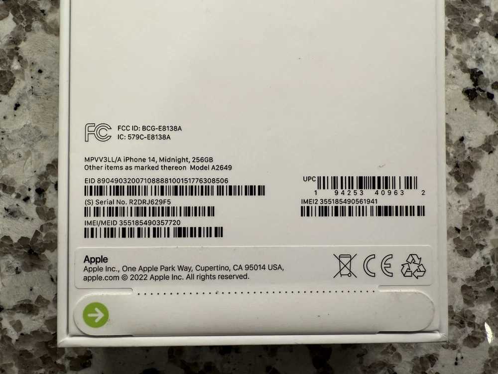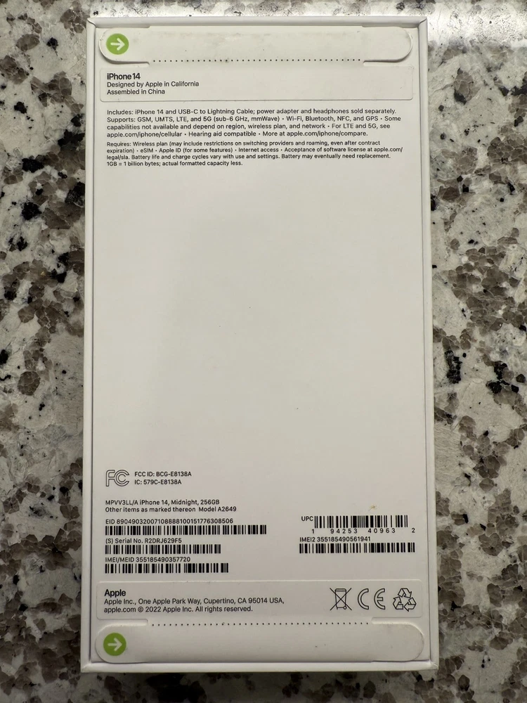 ebay template Apple iPhone 14 256GB Smartphone A2649 (Unlocked) - Midnight Item Specifics: Color: Midnight Condition: Used--System passed all testing; scratches on front glass; scratches on back glass; some scuffs/scratches on sides and edges; debris in speaker holes and switch button; missing power adapter; missing original packaging; see photos Features: Carrier: Unlocked Country: United States Simlock: Unlocked FMI: OFF iCloud: CLEAN Blacklist Status: CLEAN Battery Condition: 87% iOS Version: 17.2.1 Storage Capacity: 256GB 6.1″ OLED Super Retina XDR display 12 MP Camera (Main and Ultra Wide) A15 Bionic Chip 5G capable Face ID MagSafe Compatible Cargo Largo is not sponsored by or affiliated with the brand associated with the product being sold. System Conditions: System passed all testing *All items included are shown in photos. Phone stand NOT included* This item cannot be shipped out of the United States! Cargo Largo is not sponsored by or affiliated with the brand associated with the product being sold. Contact Seller If you have any questions, please use the “Contact Seller” link in the upper right section of the listing. Our business hours are 8:00 AM - 3:30 PM Monday-Friday (Central Time). Sales completed and emails received after normal business hours may be handled the next business day. Shipping Policy We ONLY ship within the lower 48 United States. We ONLY ship to the address selected by the customer at checkout. Buyers MAY NOT arrange their own shipping. ALL orders with total value of $250 or more WILL require a delivery signature. For this item, we DO NOT offer combined shipping with other listings. Location We offer local pickup for all our eBay auction items. To request local pickup for items you have won, please send us a message asking for “pick up” and we will send you an eBay invoice with your total. All local pickup orders MUST be paid within 4 DAYS after the listing ended per eBay policy. The payment total will include Missouri sales tax AND a $4 handling fee per item. Non-Missouri residents will need to pay IN PERSON (credit/debit cards only) within 4 days after the listing ended. Buy It Now items are NOT eligible for local pickup. Paid items must be picked up within 10 DAYS after the end of the listing. If not, your order will be cancelled and refunded. Social distancing policies WILL be enforced during pickups. Local Pickup Location 7460 Stadium Drive Kansas City, MO 64129 Pickup Hours SUNDAY MONDAY TUESDAY WEDNESDAY THURSDAY FRIDAY SATURDAY CLOSED 11am-6pm 7:30am-4pm CLOSED 7:30am-4pm 7:30am-6pm CLOSED Return Policy We are not an authorized dealer of this product and any warranty included with the product may not be honored by the manufacturer. If you believe that the item purchased from us does not match the item description, or if your item was damaged during transit, please contact us to discuss return and refund options. In order to initiate the refund process, buyer must contact us within 30 Days of receipt of item. All returns will require a return authorization. Please note that we will only pay return shipping if our listing does not accurately reflect the specifications or condition of the item received. If you wish to return an item for any other reason, we will accept a return on MOST items, provided that the item is returned to us in the same condition and within 30 Days. This applies to both the item and retail packaging. Buyer will be responsible for both original and return shipping charges Seller will initiate this transaction and refund the buyer once the item has been received AND agreed to the mutual cancellation. We DO NOT accept any returns on swimsuits, undergarments, stockings, lingerie, or any item marked AS IS for any reason other than a grievous error in the listing. Please bid accordingly on all items listed AS IS. Payments Cargo Largo requires payment within four (4) days. (Please note that this is real-time, beginning when the auction ends.) If payment has still not been received by the fourth (4th) day after the end of the auction, Cargo Largo will relist the item. Most states require the collection of SALES TAX on online sales by remote sellers. We will abide by all local, state and federal tax codes and buyer should check their state and locality for tax liability. Residents of Missouri and all buyers who pick their item(s) up locally are required to pay Missouri sales tax on all items. Sell Smarter with Kyozou. Inventory and Ecommerce Management