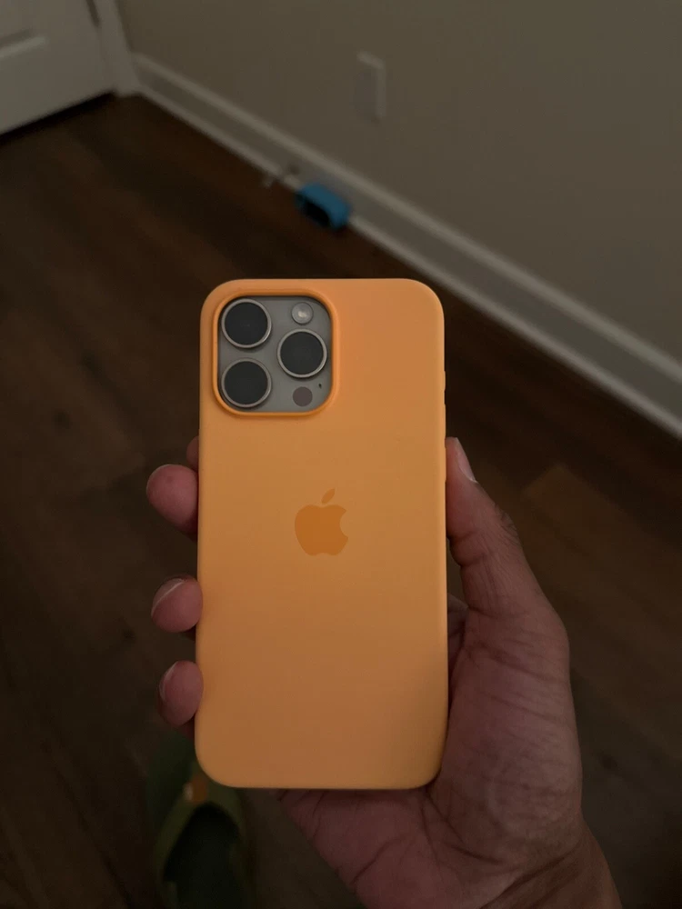 iPhone 15 Pro Max natural titanium excellent condition with orange silicone case
