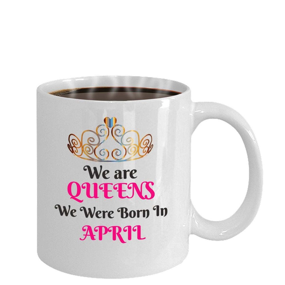 We Are Queens We Were Born In April Mug Woman April Birthday Gift Queen Mug Gift Product Details.. This high quality 11oz. ceramic white mug has a premium hard coat that provides crisp and vibrant color reproduction sure to last for years. Perfect for all hot & cold beverages. The highest quality printing possible is used. It will never fade no matter how many times you wash it. Material: 100% Ceramic. Print both sides. Dishwasher and Microwave Safe. High Gloss + Premium White Finish. Printed in the U.S.A. Personalized & Custom. We support personalized and custom mug to add custom, when placing an order, you can add notes to the "order note" in shipping address section. Also you can contact us directly via message. Shipping Info. Ready to ship in 1 to 2 business days, All products are made-to-order and proudly printed in the United States. Shipped by USPS and DHL, You will receive your order in 5-7 days. Replace & Refund. All products are defective during shipping broken, chipped will be replaced free of charge. You are not satisfied with the product, we will refund 100% money to you. If any other issues arise, please do not hesitate to message, we would be more than happy to assist you.
