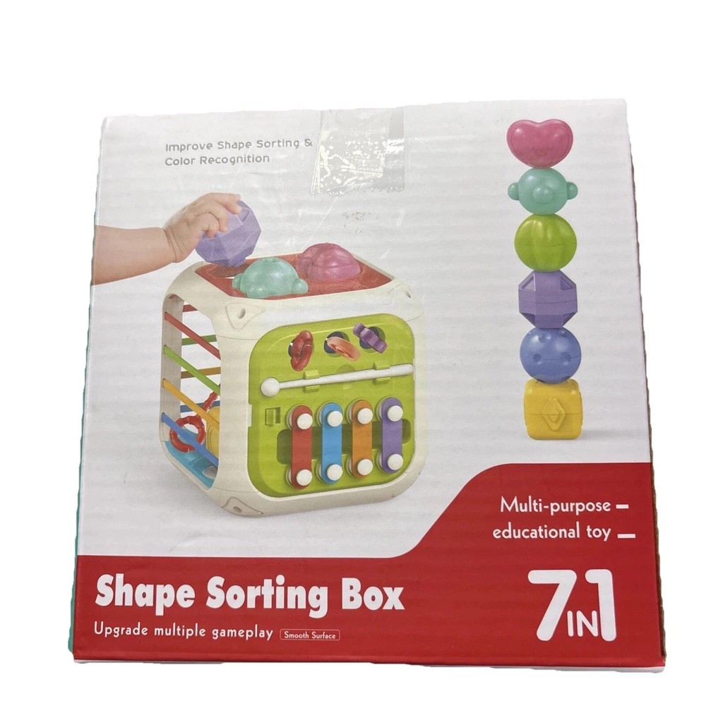 The Aprilwolf Shape Sorting Box is a versatile educational toy designed for toddlers aged 18 months and beyond. This 7-in-1 activity cube helps improve shape recognition, sorting skills, and color awareness in a playful manner. With a colorful and engaging design, this puzzle toy is suitable for both boys and girls, making it a great addition to any toddler's toy collection. Made by the reputable brand Aprilwolf in China, this toy is sure to provide hours of fun and learning for young children.