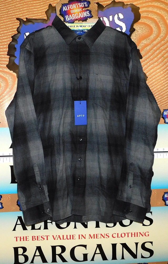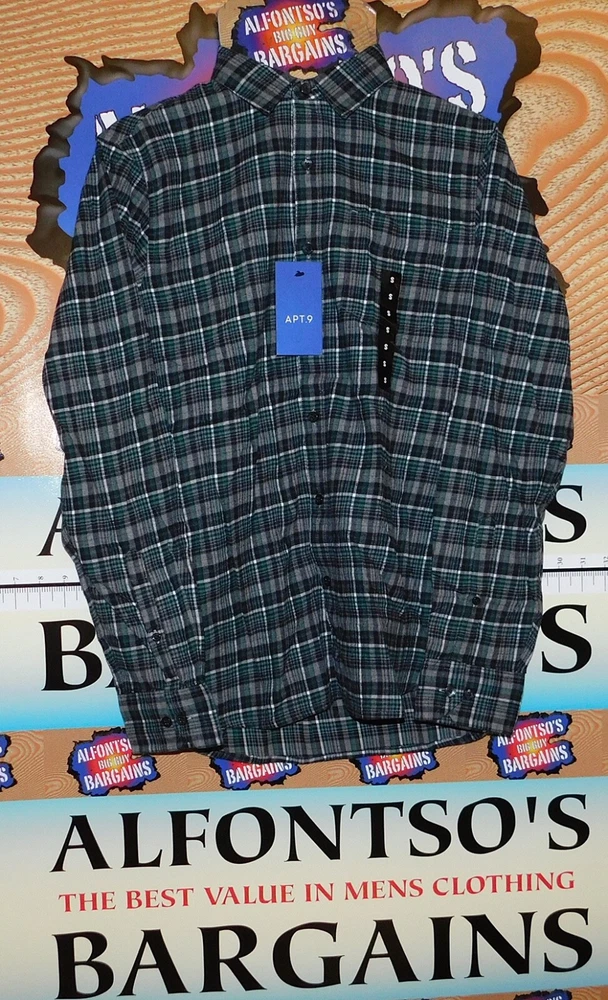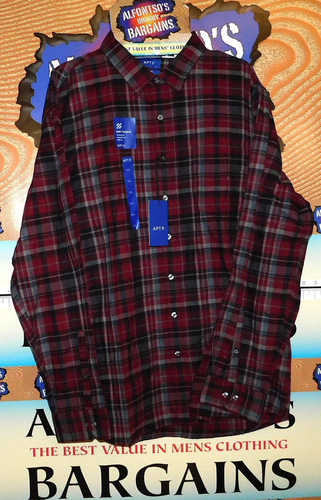 Apt. 9 Long Sleeve Shirts Soft Touch 100% Cotton Flannel. Machine washable. One left breast pocket. Spread Collar and regular cuffs. Stock photos representative of color and style, not size. Experience the comfort and style of Apt. 9 Men's Long Sleeve Soft Touch Flannel Slim Fit Shirts, now available at a great value. Crafted from 100% cotton flannel, these shirts offer a luxurious feel with a soft brushed fabric that provides both warmth and breathability. The solid pattern and classic button-up design make these shirts versatile for both casual and smart-casual occasions. Designed to fit regularly with a slimming effect, these shirts feature a full-length sleeve for a polished look. Ideal for the modern man's wardrobe, the Apt. 9 flannel shirts are a perfect blend of comfort and style, suitable for all seasons. Whether layered over a sweater or worn alone, these shirts are sure to become a go-to in your daily ensemble.