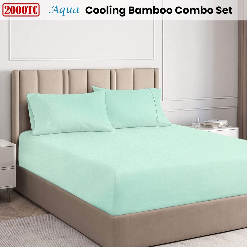 Aqua 2000TC Cooling Bamboo Combo Set by Ramesses The Aqua 2000TC Cooling Bamboo Combo Set by Ramesses offers the perfect blend of luxury and comfort. Bamboo sheets are known for its incredible softness and durability. It aims to resist stains and wrinkles for easy care. It is eco-friendly, highly absorbent, natural anti-bacterial and hypoallergenic. This will make it suitable for babies and toddlers as well as those adults that suffer from respiratory or skin allergies. The expanding and contracting nature of the fibers will help you stay warm in winter and cool in summer. Go ahead indulge yourself in this natural luxury! Features: Solid colour design 2000 thread count Set Includes: 1 x Fitted Sheet 2 x Standard Pillowcases - 48 x 73 cm (One Pillowcase for Single / King Single) Sizing Information: Single - 91 x 193 + 40 cm King Single - 107 x 203 + 40 cm Double - 137 x 193 + 40 cm Queen - 152 x 203 + 40 cm King - 183 x 204 + 40 cm Mega Queen - 152 x 203 + 50 cm Mega King - 183 x 203 + 50 cm Fabrication: 35 % Bamboo / 65% Polyester Care Instructions: Machine washable See label for detailed instructions before first use Note: Please be aware that while every effort is made to display colours and textures accurately, there may be some variations depending on the settings of your monitor. Please contact us on eBay, if you need further detailed product information. Thank you for viewing our listing, if you have any questions, please message us via ebay messaging center. Note to International buyers: A Quilt Cover is also known as Duvet Cover or Comforter Cover. Shipping: We are more than happy to combine shipping your order, so feel free to browse our listings to save on postage. Feedback: Feedback is appreciated and left for our customers. If you are not totally satisfied with your purchase, please contact us prior to leaving feedback. We are committed to resolving any issue to make you a happy customer.