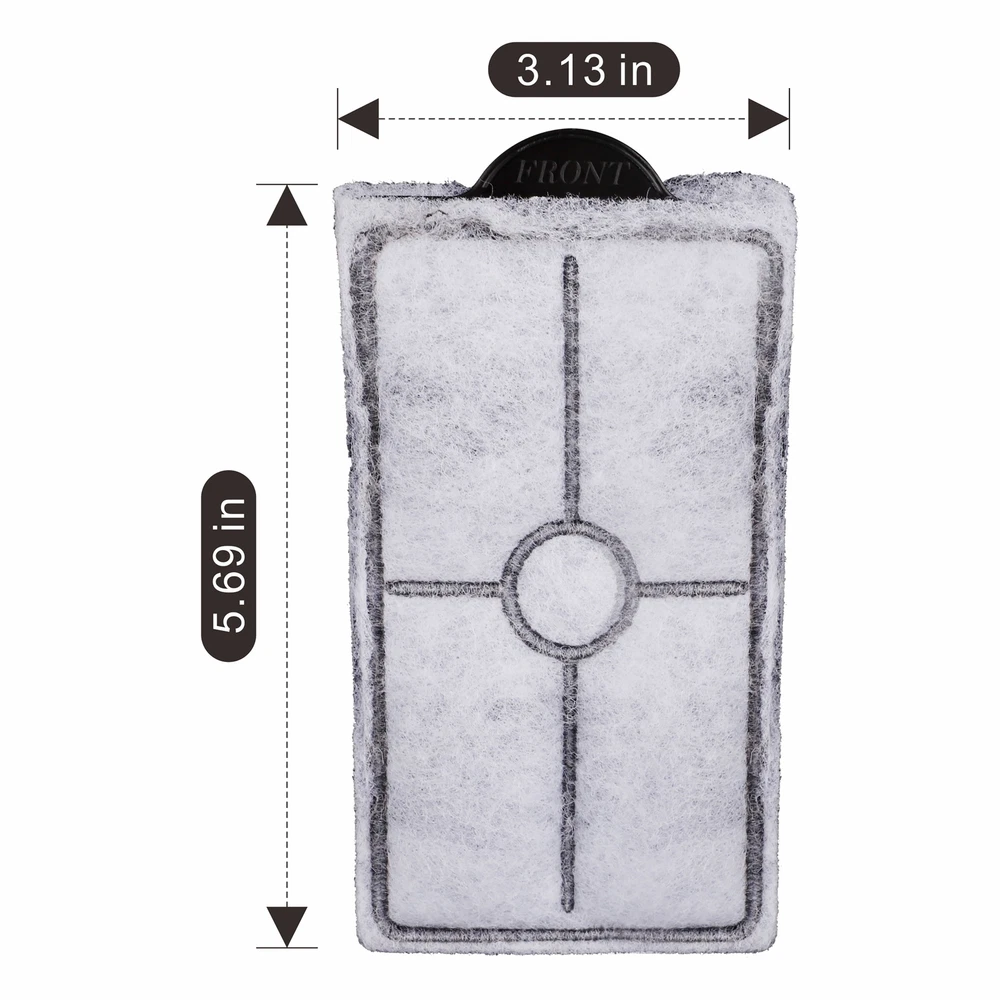 Disposable Filter Cartridges keep aquarium water crystal clear and remove odors and discoloration. The dense, dual-sided mesh catches debris and fish waste, and the activated carbon absorbs odors. Use these replacement filter cartridges in your power filter– each package is color-coded to make it simple to remember which size to purchase. These replacement filters are assembled and ready to use for your convenience. Open the lid of your filter and insert the filter cartridge into the filter. Replace a clogged filter cartridge when there is reduced water flow out of the filter. For best results, change your filter cartridge every two to four weeks or sooner if needed. Size Medium, Width3.13"×Height 5.69”,fits for AQ-10 HOB power filter to use. 3-stage filtration, remove odors ,discoloration and impurities Size:3.13"×5.69”, 3 pcs per packaging Suitable for Aquarium from 5 Gallon to 10 Gallon Recommend to replace filter cartridges every 2-4 weeks to the water quality