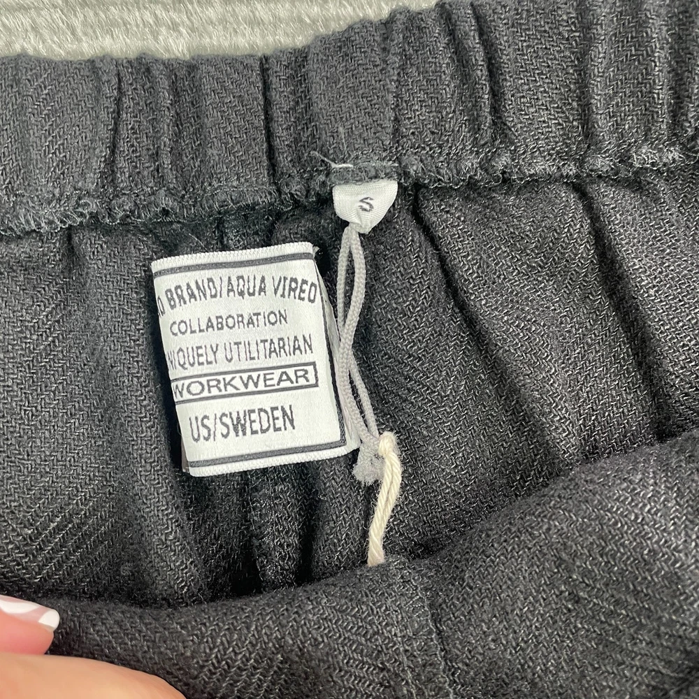 Aqua Vireo Sweden Pants Mens S Black Linen Herringbone Pull On Lounge 30" Sweden Great pre-owned condition, no flaws Please review all photos for details and measurements.