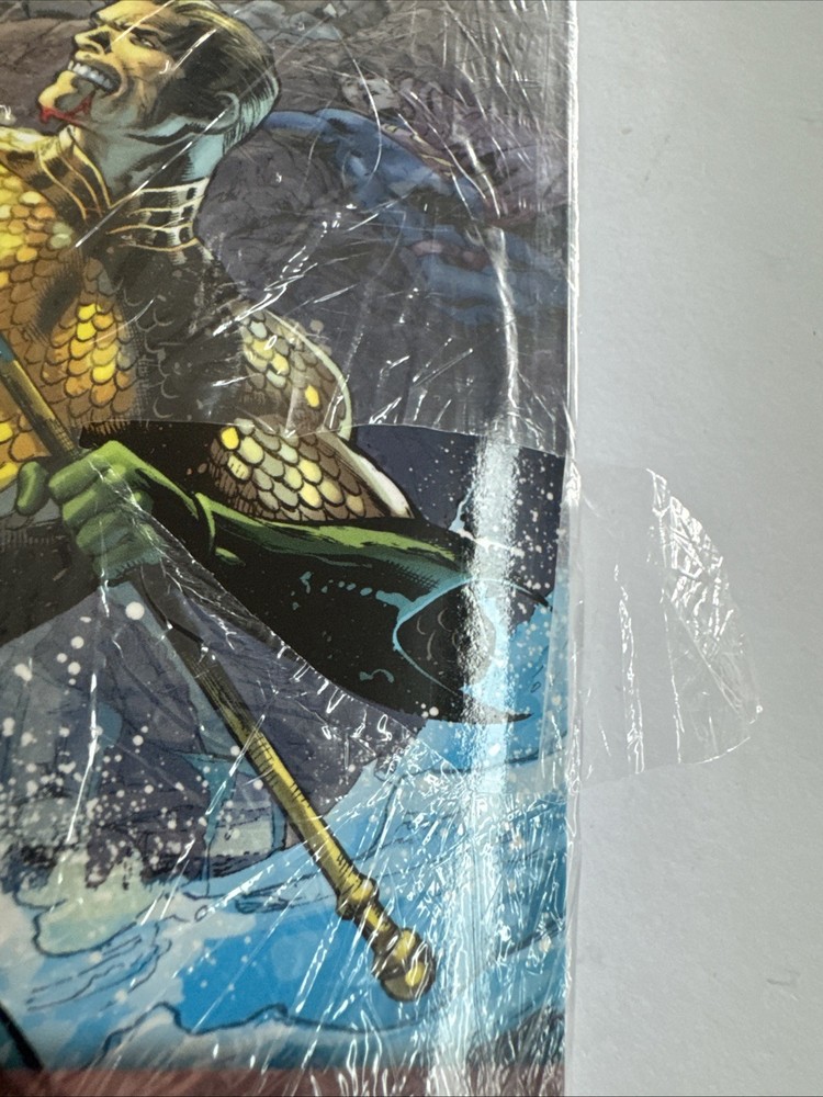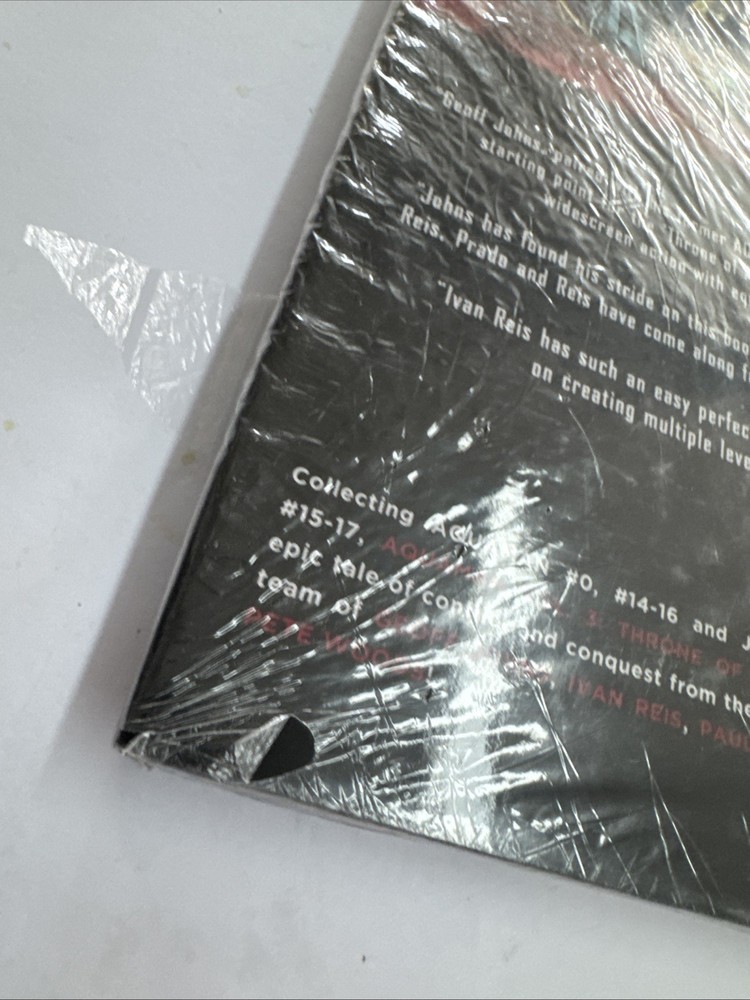 The plastic is still on it, but it has some tears in it. New hardcover