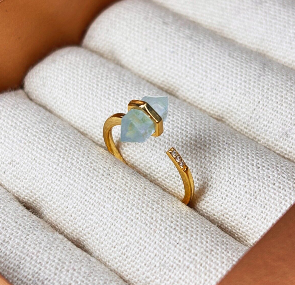 Now Gift-Ready in Premium Packaging! Every order now comes with our new elevated packaging—perfect for gifting right out of the box. Whether it’s for a loved one or a treat for yourself, your jewelry will arrive beautifully presented and ready to wow. 🌊 Embrace Calm & Clarity – A Stunning Aquamarine Crystal Ring! 🚚 FAST & FREE SHIPPING! 📦 Ships within 1 business day – Ready to gift! Find serenity, courage, and clarity with this real Aquamarine crystal point ring, crafted with a beautiful hexagonal crystal wand set in high-quality gold-plated brass. Known as the stone of tranquility, Aquamarine is deeply connected to the ocean’s calming energy, making this ring the perfect symbol of peace and inner strength. This adjustable ring (fits sizes 5-11) is effortlessly elegant, ideal for everyday wear, stacking, or gifting to someone special. 💙 FEATURING AQUAMARINE – THE STONE OF PEACE & COURAGE! ✓ Calms the Mind & Reduces Stress – A perfect anxiety ring for everyday wear ✓ Encourages Strength & Confidence – Enhances communication and self-expression ✓ March Birthstone Jewelry – A meaningful gift for those born under Pisces & Aries 💎 EXPLORE OTHER GEMSTONE OPTIONS! ✨ Amethyst – Protection, tranquility & spiritual growth ✨ Rose Quartz – Love, harmony & emotional healing ✨ Moonstone – Intuition, balance & new beginnings ✨ Labradorite – Transformation, creativity & inner strength ✨ PRODUCT DETAILS ✨ ✔️ Material: High-quality gold-plated brass for durability ✔️ Gemstone: Genuine hexagonal crystal point (real Aquamarine) ✔️ Ring Size: Fully adjustable – fits sizes 5-11 ✔️ Style: Minimalist, boho chic, and effortlessly elegant 💎 WHY YOU’LL LOVE THIS RING 💎 ✔️ Real Crystal Energy: Carry the power of Aquamarine for calm & confidence ✔️ Dainty & Lightweight: Comfortable for everyday wear ✔️ Perfect for Stacking: Pairs beautifully with other rings ✔️ Adjustable Fit: A one-size-fits-all design makes it the perfect gift 🎁 A MEANINGFUL GIFT FOR: 🎀 Crystal & Healing Energy Lovers – A wearable source of positivity 🎀 March Birthdays & Astrology Fans – A perfect Pisces & Aries birthstone ring 🎀 Boho Jewelry Enthusiasts – A must-have statement piece 🎀 Mindfulness & Meditation Seekers – A touch of calm energy in jewelry form ✨ CARE INSTRUCTIONS ✨ ✔️ Store in a dry jewelry box when not in use ✔️ Avoid contact with water, perfumes, and chemicals ✔️ Clean gently with a soft jewelry cloth to maintain shine 🚚 FAST & FREE SHIPPING! 📦 Ships within 1 business day – Ready to gift! 🌊 Let the soothing energy of Aquamarine bring balance and clarity into your life! Whether you're seeking a calming crystal ring, a March birthstone piece, or a meaningful gift, this adjustable gold crystal point ring is a timeless treasure. ✨💎