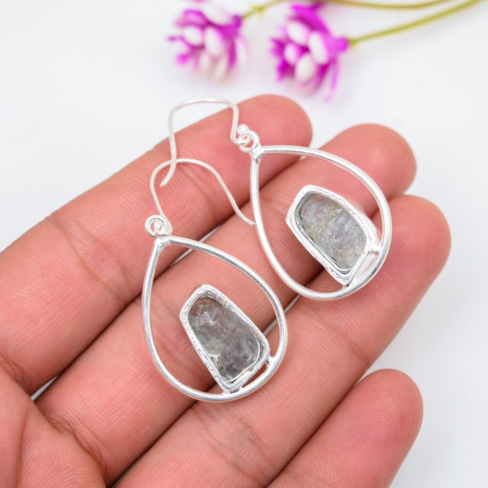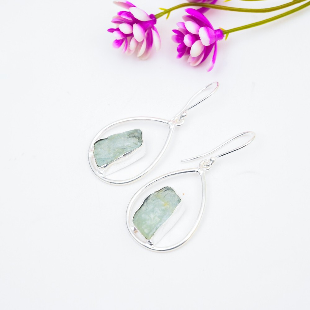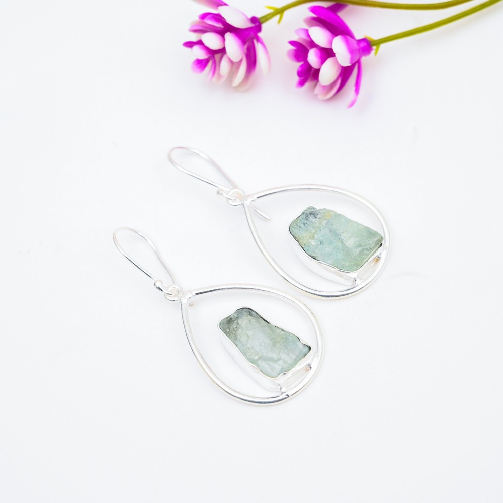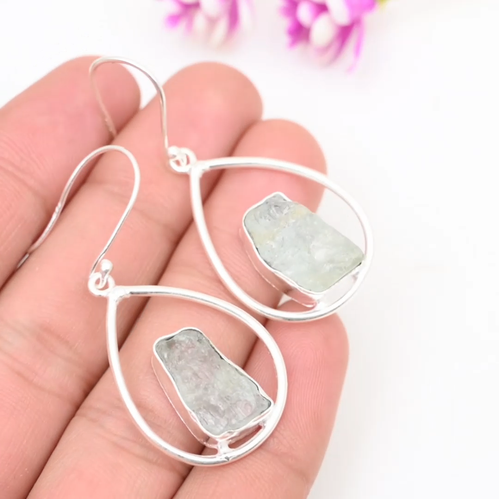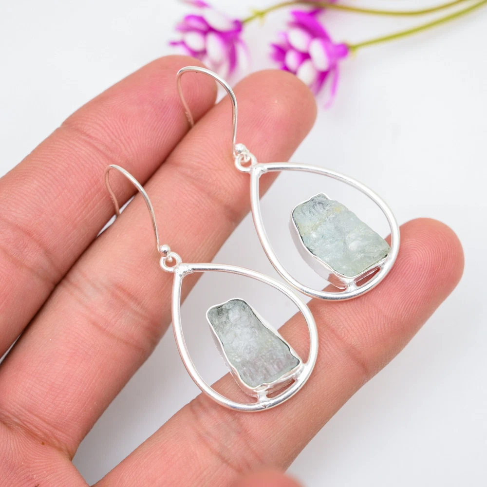 HomeAquamarine Gemstone Earrings in 925 Sterling Silver Handmade Jewelry Gift
