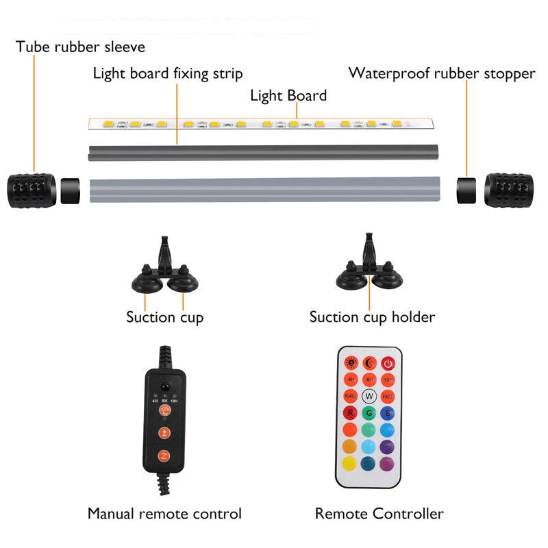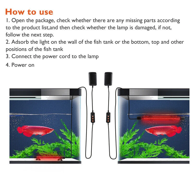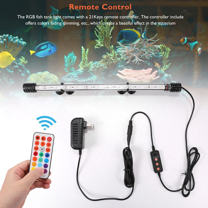 Aquarium Fish Tank RGB LED Light Bar Submersible SMD Strip Lamp with Remote US # Ship within 24 hours. # 100% New & Excellent Quality # Strictly QC, Each item was fully checked before shipping # FREE & FAST Shipping Delivery with Tracking Number Feature: ✔ The product adopts 5050 RGB three-color highlight lamp beads, high brightness, no flicker, better color rendering effect. ✔ Rich product function design, sunrise and sunset mode, timing mode, static 13 colors adjustable, dynamic 2 jump modes. ✔ The product can be adjusted by manual adjustment and remote control, which is convenient and practial. ✔ Using high-quality low-voltage power adapter, safe and reliable, to ensure stable LED light and longer life. ✔ Widely used for viewing and lure of arowan, koi and other fish. ✔ Suitable for office, home, aquarium and other environments. Specification: Lamp body input voltage:DC 12V Lamp bead model:5050 RGB Control method:manual control+remote control Timing function:static 13 colors/dynamic 2 kinds Sunrise and sunset mode:slow on/off for 30 minute Length: 8cm/7.09inch,48cm/19inch Package includes: 1x Fish Light with Power Adapter 1x Remote Control 1x Manual Detail Image: Payment: 1.We accept ebay payment only. 2.All major credit cards are accepted through secure payment processor ebay payment. Shipping: 1.We ship to your eBay or ebaypayment address. Please make sure your eBay and ebaypayment address is correct before you pay. 2.Items will be shipped within 1-3 business day when we received payment. 3.Delivery time depends on destination and other factors; 4.International buyers please note: a.Import duties, taxes and charges are not included in the item price or shipping charges. These charges are buyer’s responsibility. We will try our best to reduce the risk of the custom duties. b.Please check with your country's customs office to determine what these additional costs will be prior to buying. Returns: Please contact me before opening any return,don't worry, I will definitely solve your problem.thank you!!! 1) If you received an incorrect, damaged, defective, or item not as described, contact us for a partial/full refund or replacement on our cost. 2) If you want to return the item, please contact us within 30 days after package received. Return products must also be in its original condition: including box, packaging and all other accessories. Payment 1.We accept PayPal only! 2.Please keep the consistency of the address from Paypal and eBay. 3.Payment must be received within 3 days since you won the item, or eBay will launch Unpaid Reminder Against you. Delivery Details 1. All items will be shipped to buyer's ebay address,we don't take charge for wrong address left. 2. All items will be shipped within 24 working hours upon receipt of payment, and multiple items will be combined shipping. 3. In most cases, delivery takes around 1-7 business days from US Warehouse by UPS/USPS, it's highly depended on the efficiency of the shipping carrier. If your item doesn't arrive on time, please contact us immediately for further assistance. Please note there is no local pickup service available. Term of Sales Customer satisfaction is our top priority. Please message us over the eBay messages. All returns must have RMA number. Returns with no RMA number will be avoided! Changed your mind and don't want the item anymore? No Problem! Please contact us within 30 days. We do not charge restocking fee unless the item you are returning is Brand New. Defective/Dead items will be fully refunded or replaced after matching the serial number with the one in our records. Order/bid cancellation: We can cancel your order only if you contact us within 15 min after your purchase. No exceptions. If your order arrives incorrect or the package is damaged in result of a carrier company, you must notify us within 2 days of receipt. We are aware of all fraud cases and have all the items details in our records. If the goods are not defective, you will be responsible for the return postage costs. Returned item must include all previously included accessories. No restocking fee will apply. If there is a quality issue or malfunction with the product, we strongly suggest you to contact us asap. Any item needed to be returned must be securely packaged, insured and shipped with tracking for safety. We cannot be responsible for lost damaged packages. We carefully inspect returned items upon receipt before any possible refunds, credits, or exchanges. Thank you for purchasing from us We are professional manufacturer seller. All products are factory direct sales, best quality at best price.We strive for 100% customer satisfaction. We maintain high standards of excellence and strive for 100% customer satisfaction. Positive feedback with 5 star rating is very important to us. Please give us a chance to resolve any issues before posting a neutral or negative feedback. Thanks a lot. 1. All items will be shipped to buyer's ebay address,we don't take charge for wrong address left. 2. All items will be shipped within 24 working hours upon receipt of payment, and multiple items will be combined shipping. 3. In most cases, delivery takes around 2-3 business days from UK Warehouse by RoyalMail, it's highly depended on the efficiency of the shipping carrier. If your item doesn't arrive on time, please contact us immediately for further assistance. Please note there is no local pickup service available. Customer satisfaction is our top priority. Please message us over the eBay messages. All returns must have RMA number. Returns with no RMA number will be avoided! Changed your mind and don't want the item anymore? No Problem! Please contact us within 30 days. We do not charge restocking fee unless the item you are returning is Brand New. Defective/Dead items will be fully refunded or replaced after matching the serial number with the one in our records. Order/bid cancellation: We can cancel your order only if you contact us within 15 m