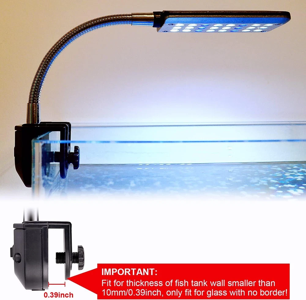 Store New Arrivals Add to Favorite View Feedback Contact Aquarium Light Clip on Fish Tank Lighting Small Fish Light for Rimless Fish Tanks, White and Blue Leds Description Item model number 1 Light Source Type LED Style Classic Number of Items 1 Power Source Corded Electric Number of Light Sources 1 Country of Origin China Batteries Included? No Lighting Method Adjustable Mounting Type Clip Lamp Type aquarium,aquarium light Number of Pieces 1 Batteries Required? No Bulb Shape Size T Installation Type Spoke Clip Product Dimensions 1"D x 1"W x 1"H Material Plastic Efficiency energy-saving Controller Type Remote Control Finish Type Metal Specific Uses For Product Aquarium Indoor/Outdoor Usage Indoor Brightness 126 Lux Control Method Remote Water Resistance Level Waterproof Item Weight 0.38 Pounds Connectivity Technology USB Special Features Corded Special Feature Corded Shade Height 1 Inches Part Number XY0040 Shade Color White, Blue Color Temperature 9000 Kelvin Color White&Blue LEDs No Timer & Dimmer 1.5W Wattage 1.5 watts Is Cordless? No Base Material Metal Is Waterproof true Shape Rectangular Voltage 110 Volts Recommended Uses For Product Aquarium lighting Shade Material Plastic Finish types Metal Included Components Light kit inlcuded Switch Type Remote Two Light Modes: the small aquarium light has twenty-four LEDs in total, including eighteen white LEDs and six blue LEDs, in day mode, all lights on; in night mode, blue lights on, the aquarium lights for fish tank suitable for both freshwater and saltwater Super Bright and Energy Saving: with power 1.5 watt, this aquarium LED light gives off very bright crisp light for fish tanks below 10 gallon water; low power consumption, the small fish tank light is 40% energy saving than ordinary LED lights Easy to Use: just clip the aquarium lamp on and adjust the screw on a suitable tightness, and the flexible metal tubing help to adjust the nano aquarium light to any desirable direction and angle Long Lifespan: the service life of the aquarium clip light is 20,000 hours, durable and long lasting, don’t bother you to change your aquarium lights frequently Suggested Aquarium Size: the length of the clip on aquarium light body is 3.54 inches, which is suggested to be used for 6 - 15 inches long fish tanks or 2 - 10 gallon tank Product Description Small Fish Tank Light Clip on Led Light for Fish Tank Below 5 Gallon Goehiaul clip on led light for aquarium has 24 LEDs in total, including 18 white LEDs and 6 blue LEDs, in day mode, all lights on; in night mode, blue lights on, the power is 1.5 watt, suitable for fish tanks below 5 gallon. Adjustable Arm The arm of the fish bowl light is made from high quality metal hose, which help to adjust the light to any desirable direction. 2 Light Modes The small aquarium lighting has two light modes, which is all lights on and blue lights on, to meet different light needs for day and night. High Quality LEDs This LED aquarium light is made of high quality LEDs, no flickering, long lifespan and energy efficient. Customer Application Cases For Fish Bowl For Rectangle Tank For Circular Tank Notes: Please do not tighten the light to much in case it cracking the glass. Only suit for fish tanks with wall thickness smaller than 0.39 inches. ABOUT US We offer the best prices around on high quality products. Our E-store includes media such as books, movies, music and games while offering electronics, toys, sporting apparel, clothing, tools, general home, garden items and more. SHIPPING We are always working hard to ensure your package arrives as soon as possible. Please understand that some factors like weather, high postal traffic, and the performance of shipping companies are outside of our control. We offer free shipping to the lower 48 states and ship within 2 business days of payment, usually sooner. We do not accept P.O. Boxes. Please provide a physical address. For shipping outside of the continental USA, we only use eBay's Global Shipping Program.The item is shipped to KY and then sent to the rest of the world. International customers are responsible for all duties and taxes. Continue to check out in order to calculate costs for shipping the item to your country. Messages regarding eBay's Global Shipping Program MUST be directed at eBay EXCLUSIVELY. RETURNS We offer a 30-Day Return Policy on items which you are not completely satisfied with. You have the option for a full-refund or an exchange of the item. No returns are available on items shipped outside of the USA. PAYMENT We accept PayPal. CONTACT US This page content is yet to come Please ad us to your favorite seller and visit again later Thank You CUSTOMER SATISFACTION We try our very best to make sure every customer is completely satisfied. If there's a problem, message us! We're happy to help. WE ACCEPT Copyright © 2021 AutoDS. | All Rights Reserved