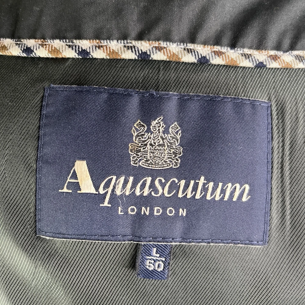 The Aquascutum London Harrington Jacket for men is a classic sport coat in black, featuring a zip-up closure and made of cotton. With a classic fit and size L, this jacket is a stylish and timeless piece perfect for everyday wear. The iconic brand, Aquascutum, ensures quality and sophistication, making this jacket a versatile addition to any man's wardrobe.