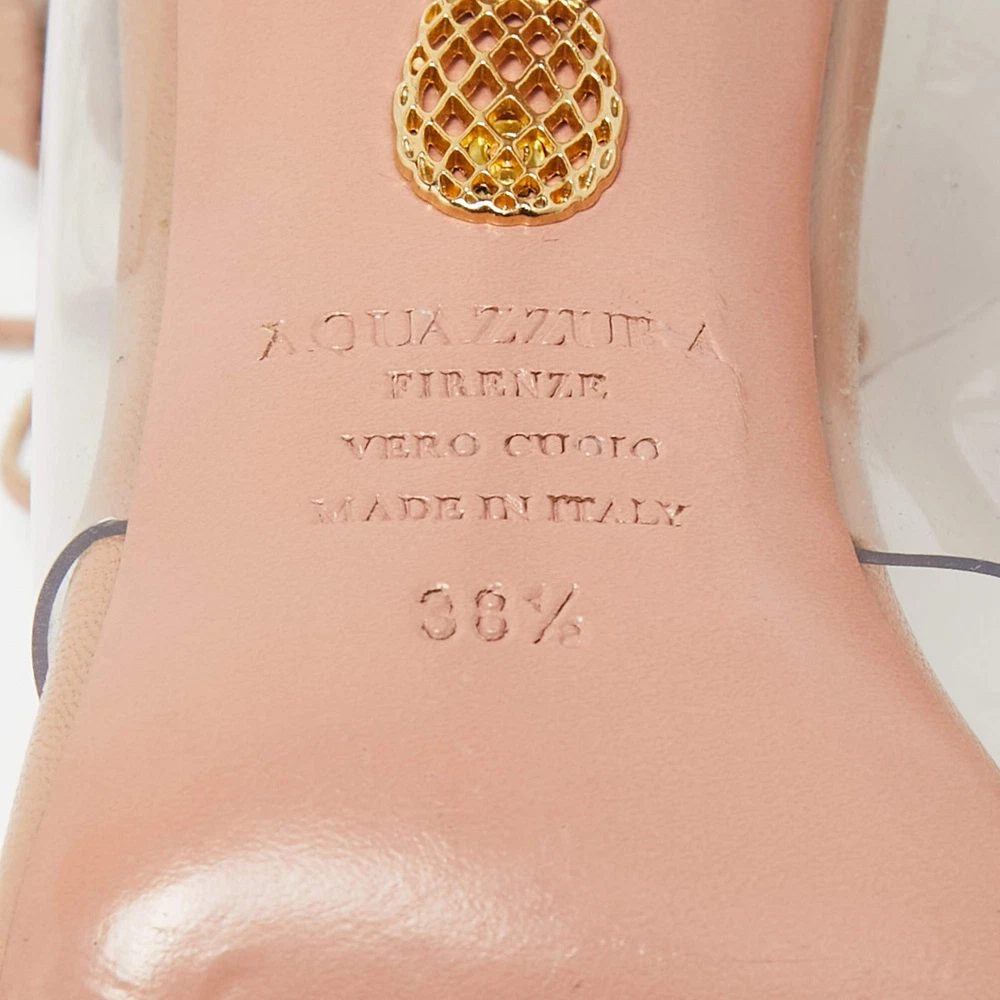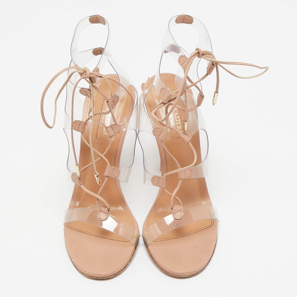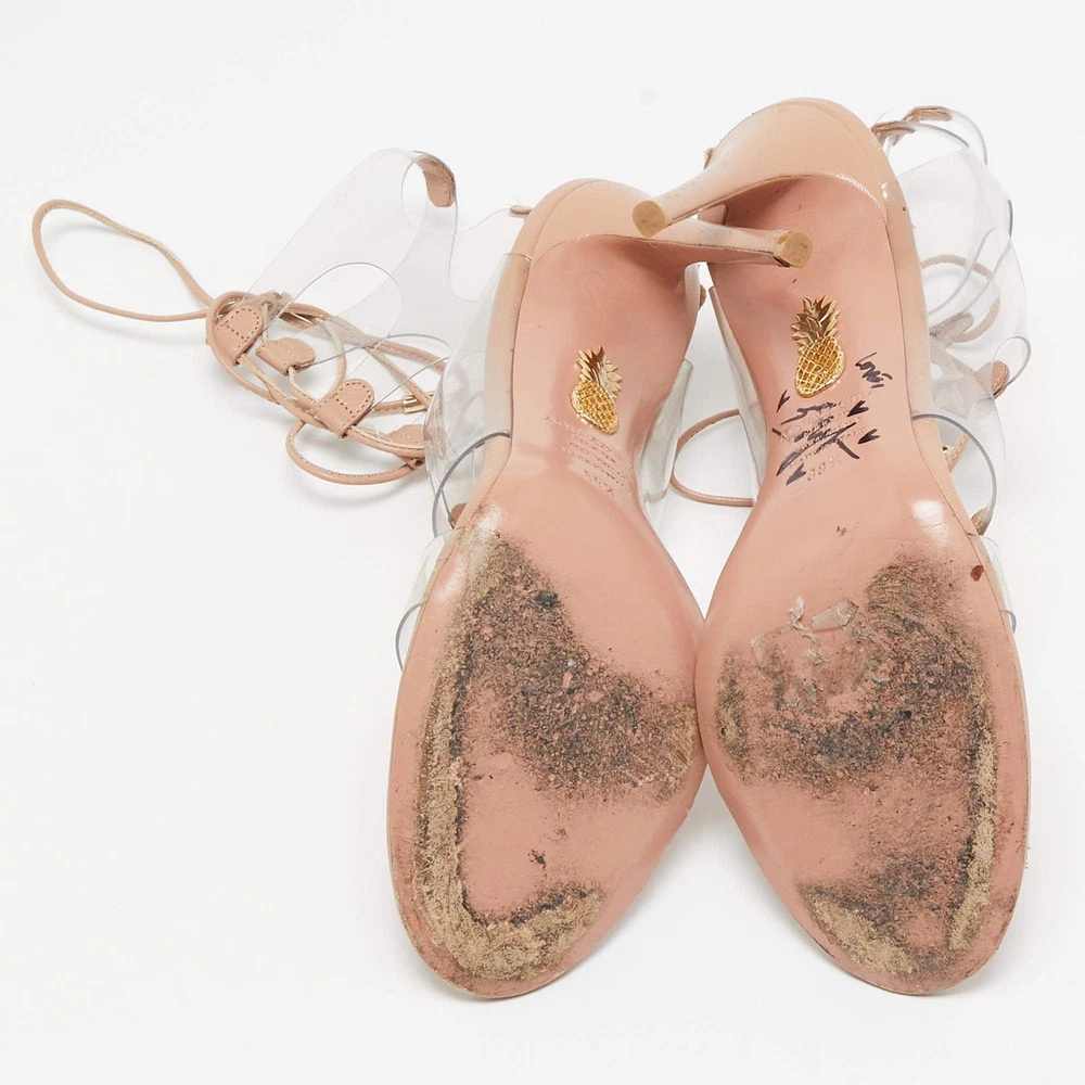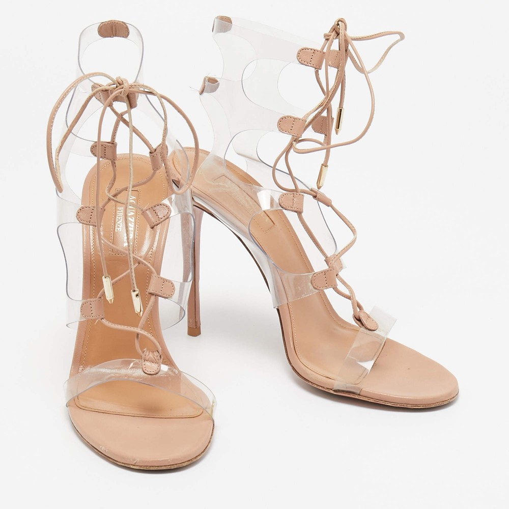 Aquazzura Beige Leather and PVC Milos Ankle Strap Sandals Size 38.5