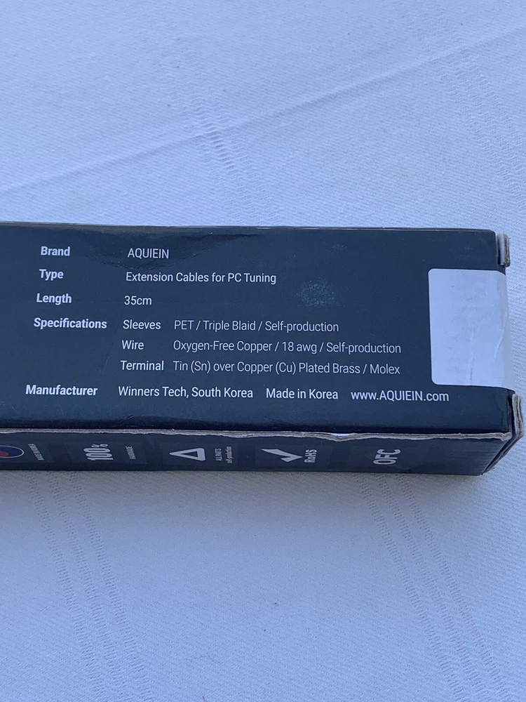 Color:WhiteCable Length:35cmFeatures:Tin (Sn)over Copper (Cu) Plated Brass/ MolexType:Extension Cables For PC TuningCountry/Region of Manufacture:KoreaBrand:Aquiein
