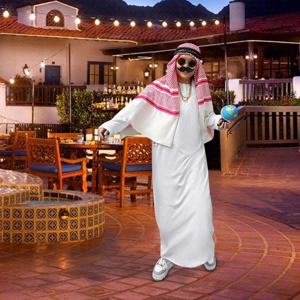Arabian Costumes Men Middle Eastern Costume With Long Tunic Headdress Bullet Points: Exude Charisma: Experience the allure of elegance and luxury with this Arabian costume set. Stand out with a white robe, turban, sunglasses, and dazzling gold accessories for a look Convenient Dressing Solution: Enhance your Arabian costume experience with a user-friendly white robe, adjustable black headband, and collar buttons for easy dressing and removal Comfortable Support: Lavishly designed Arabian costumes with excellent details and intricate accents at rings and necklaces; hijab prints delicately crafted for convenient storage Suitable Size: The Arabian Costume's rounded neckline ensures it won't scratch your skin, with a adjusted yet loose fit in sizes S-3XL for ideal comfort and ease Appeal Attention Beautifully: Provide the festive spirit and stand out in style with friends at the carnival or theme party in this stunning Arabian costume Includes white robe, red & white checkered turban, and sunglasses. Easy to wear & remove, non-pilling fabric with a tailored fit for a lasting impression. Specification: Name: Arabian Costumes Product material: Polyester + Alloy + PP Product weight: about 860g Available size: S-3XL Product size: As shown in the picture Packing List: White robe*1 Red and white checkered headscarf*1 Sunglasses*1 Gold ring*1 Gold necklace*1 Gold bracelet*1 Black hairband*1 Notes: 1. Due to the lighting effects and photographing angles, there is a color difference in the product, please understand. 2. Due to manual measurement, there is a tolerance in the product size. 1.You can make a Credit payment via Paypal.Paypal will let you use MasterCard,Visa to pay. 2.Payment should be completed within 5 days after auction closed, or unpaid dispute will be filed for an closing auction.An unpaid case will be filled after 4 days. ● We strive for 100% customer satisfaction ! ● Positive Feedback is very important to us. ● We hope that you contact us immediately BEFORE you give us neutral or negative feedback, so that we can satisfactorily address your concerns. ● We promise to offer the lowest price and high quality produce. Dear buyers : ● Welcome to my store ! ● Your satisfaction is our top goal,we appreciate your patronizing. ● If you have any questions, please contact us before leave negative or neutral feedback, we will try our best to solve the issue to your satisfaction, thanks ! ● If you are satisfied with our service, please rate the details of the transaction (Detailed Seller Ratings) on eBay. ● Please always talk to us via ebay Message. ● We appreciate your business and look forward to growing our e-Bay sales with satisfied customers.
