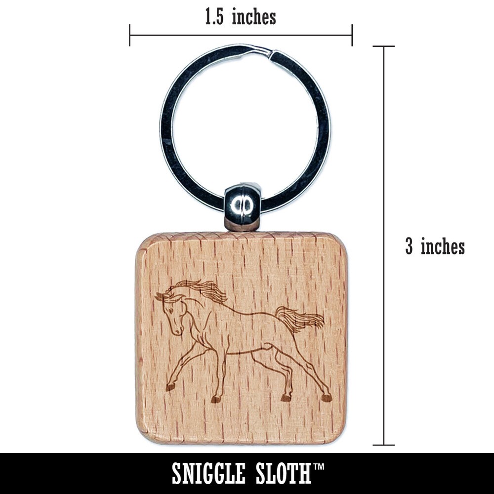 Arabian Horse Design Engraved Wooden Square Keychain Charm