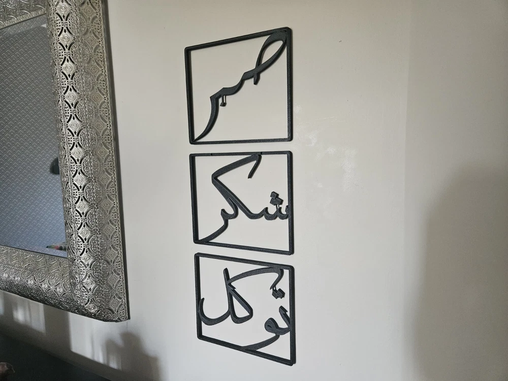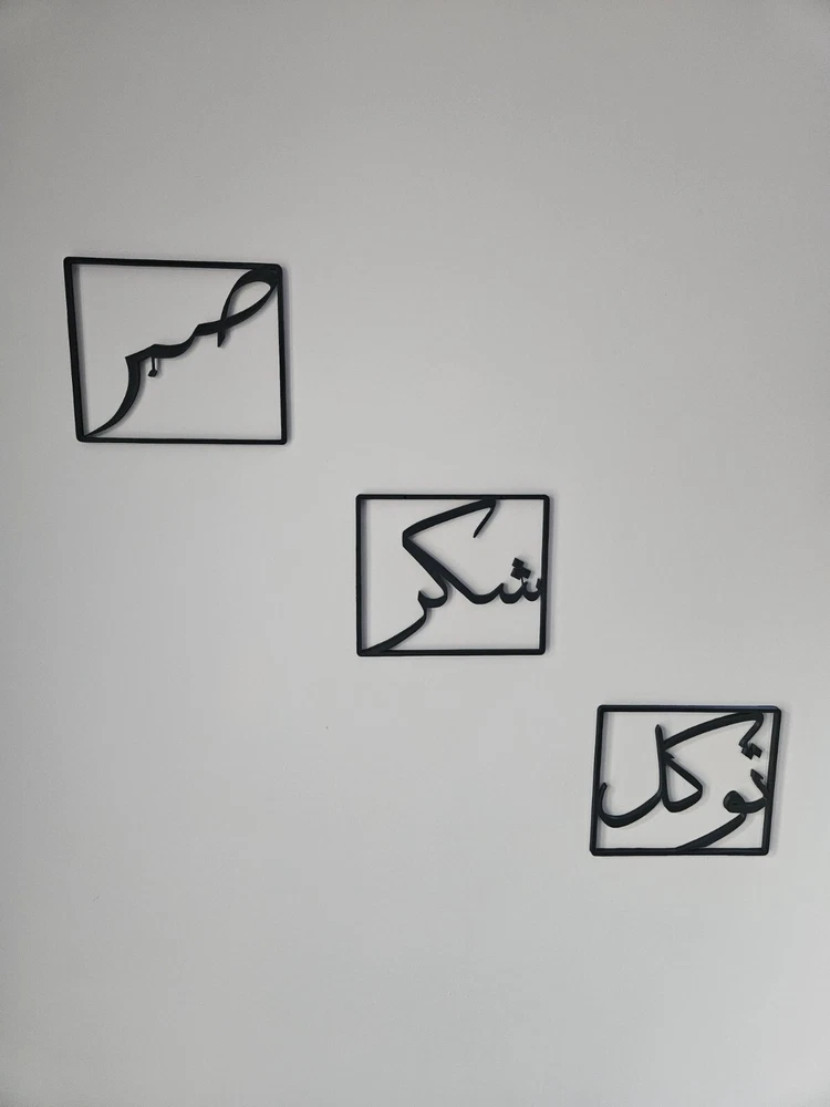 Add a touch of elegance and spirituality to your home with this stunning Arabic Wall Art featuring the words Sabr , Shukr , and Tawakkul . These powerful Arabic terms represent Patience , Gratitude , and Trust in Allah , making it a meaningful addition to any living space. Material : High-quality print on premium paper, framed with a sleek black frame. Size : 200mm (Width) x 170mm (Height) x 7mm (Depth) – Perfectly sized for any wall. Frame : Sturdy black frame that complements the artwork and adds a modern touch to your decor. Style : A perfect blend of Modern Islamic Art and minimalist design, ideal for living rooms, offices , or any space seeking both beauty and inspiration. This piece serves as a beautiful reminder of faith, positivity, and strength . Whether you're decorating your own home or looking for a thoughtful gift, this framed Arabic wall art will surely make an impression.