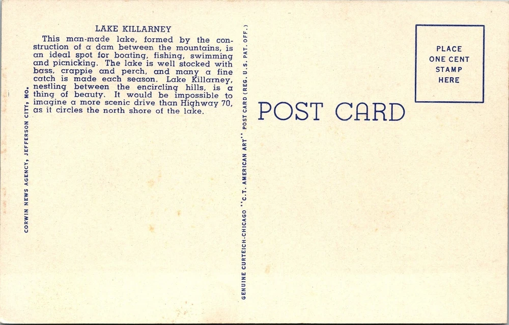 Arcadia Valley MO-Missouri, Scenic View Of Lake Killarney Vintage Postcard
