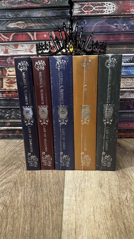 Arcane Society Exclusive – Complete 5-Book Hardcover Set Lady of Darkness by Melissa K. Roehrich, including: • Lady of Darkness (Book One) • Lady of Shadows (Book Two) • Lady of Ashes (Book Three) • Lady of Embers (Book Four) • Lady of Starfire (Book Five) This is a factory-shrink-wrapped exclusive Arcane Society collector set, never opened and in brand new condition. Produced with premium covers, foil decorations, and sprayed edges. 📦 Condition: New, sealed in original shrink wrap 📸 Exact set shown in photos Includes bonus promo art print shown. Perfect for collectors of Arcane Society editions, fantasy hardcover sets, and decorative book sets. Ships securely with care to protect collectible condition.