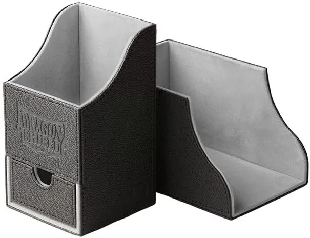 Further Details Title: Arcane Tinman Dragon Shield: Nest Plus Deck Box - Black and Light Grey, Large Condition: New Description: PRODUCT DESCRIPTION The Dragon Shield’s Nest and Nest+ Deck Boxes offer high-end deck protection with a simple design and strong magnetic seal. Each Nest and Nest+ has a black exterior and classy colored interior fabric. Nest+ Deck Boxes also include a removable dice tray. Piece all 8 product packages together to discover different parts of the story, “Saturion Ascendant,” to discover the origins of the Nest. As safe as a dragon’s nest. Extra durable deck box capable of holding 100+ double sleeved cards. Slick black exterior with classic interior colors. As durable as dragons’ nests. Customizable assembly. The Limited Edition Deck Shells feature incredible artwork from our Dragon Shield sleeve lines and are only available for a short time. SAFETY WARNING no warning Brand: Arcane Tinman Color: Black and Light Grey Type: Trading Card Storage Albums & Cases MPN: ART40201 Item Weight: 200 Gramsg Material: Plastic/Felt Age Level: 10 years and up Item Length: 101mm Release Date: 11/16/2018 Card Capacity: 100 Pounds Number of Items: 1 Item Width: 101mm Item Height: 203mm As safe as a dragon’s nest. Dragon Shield Nest and Nest+ Deck Boxes offer top of the line protection with a simple design and strong magnetic seal. Extra durable deck box capable of holding 100+ double sleeved cards. Each Nest and Nest+ has a black exterior and classy colored interior fabric Customizable assembly EXCLUSIVE DRAGON SHIELD NEST BOX - Dragon Shield Nest 100 Box offers exclusive, high-end deck protection with an elegant design and a strong magnetic seal SUPERIOR QUALITY - Nest features a durable 'Dragon Skin' exterior and velvety soft interior, and is available in various color combinations FIRMLY BUILT - A Nest Box holds 115+ single sleeved cards or 100+ double sleeved cards BLACK/ LIGHT GREY - Deep Black exterior and cool Light Grey interior CUSTOMIZABLE ASSEMBLY - The clever design can be reassembled in many ways to conserve board space, making it a suitable card holder during play Missing Information? Please contact us if any details are missing and where possible we will add the information to our listing.