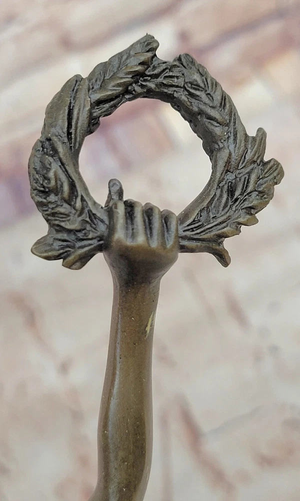 Archangel Nike Bronze Sculpture with Laurel Wreath by A. Bofill Mythical Decor Archangel Nike Bronze Sculpture with Laurel Wreath by A. Bofill Mythical Decor Condition : This sculpture is in perfect condition. Bronze Dimensions with Marble Base: Height 14.5" X Width 7.5" Marble Dimensions: Diameter 4.5" Height without base:12" Weight:5 LBS Inventory:69EPA6966796 This exquisite bronze sculpture depicts an angel gracefully carrying a laurel wreath, symbolizing honor and achievement. Crafted with meticulous attention to detail, the figure embodies the timeless elegance characteristic of Antoine Bofill's work. Bofill, a Spanish artist active in the late 19th and early 20th centuries, was renowned for his small, decorative bronze sculptures that captured the beauty and grace of the human form. ARTNET Handmade using the traditional lost wax method, this sculpture ensures exceptional quality and durability. The rich brown patina finish enhances the depth and texture of the bronze, highlighting the intricate details of the angel's wings and flowing robes. Mounted on a black marble base, the sculpture offers a striking contrast that accentuates its classical aesthetic. Due to the natural variations in marble, each piece is unique, adding to its exclusivity and charm. This timeless artwork is suitable for a variety of interior settings, serving as a captivating centerpiece that evokes a sense of tranquility and reverence. Whether displayed in a home, office, or gallery, it stands as a testament to the enduring beauty of classical sculpture. Angel with a Laurel Wreath Bronze Sculpture By A, Bofill Detailed Artwork Statue www.bronzhaus.com Video will open in a new window Using the eBay App? Paste link into a browser window: [isdntekvideo] Shipping Terms : Most of our items are shipped via USPS (United States Postal Service) mail or UPS. Most orders are shipped within 24-48 hours of purchase. Please be aware that not all items are available for USPS shipping due to size and weight. We do ship to Hawaii, Alaska, Canada, Puerto Rico, APO/AE, and U.S. Virgin Islands, however, an additional charge may be required. Please contact us before making any purchases in these areas. For Non-USA customers, you may be responsible for all duty, tax, brokerage fees that may be due upon delivery (shipping costs cover freight charges only). We also ship internationally. Please refer to the "Shipping and Handling" chart for the rates for each area. Payment : We accept just about any form of payment. PayPal, Master Card, Visa or American Express credit cards. Money orders, cashiers checks, and even personal or business checks. For governmental institutions, we will also accept a purchase order. Please understand that for personal or business checks we have to wait for the check to clear (usually 7 days) before shipping. Condition : New Detailed Hand Crafted Hot Cast Bronze Satisfaction Guaranteed. This is Stock Photo, Slight Color Variation!! Listing and template services provided by inkFrog