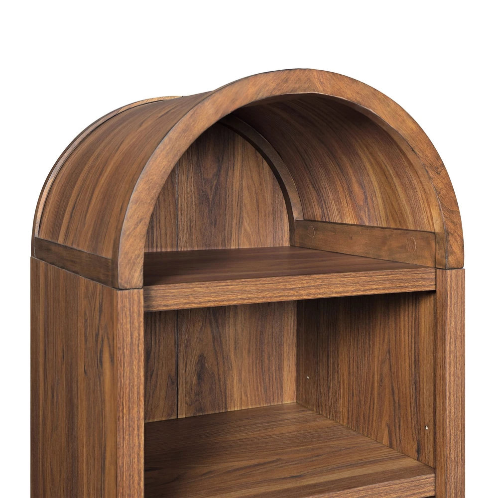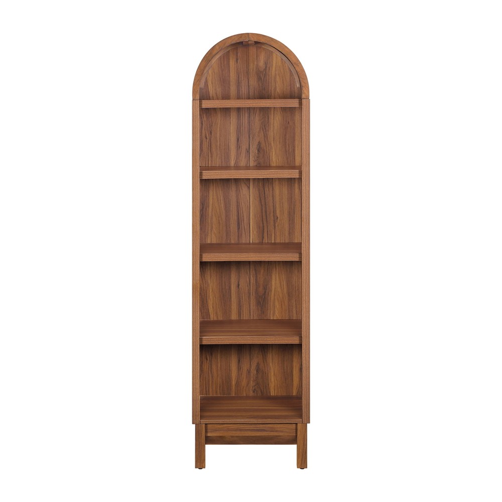 Arched Narrow Bookcase 66.5"H Five Shelves Walnut Finish Juliet Collection Introducing the Juliet Narrow Arch Bookcase, a perfect blend of form, function, and flair for your home. This bookcase is a statement of elegance and versatility, designed to enhance any interior décor. With its rounded arch top, the Juliet Narrow Arch Bookcase captivates with architectural grace and a modern twist. A perfect match for your personal style, whether you're aiming for a bright and airy vibe or a sleek, sophisticated look. The Juliet stands out with its five spacious shelves, each adjustable to accommodate your collection of books, cherished collectibles or decorative pieces. This flexibility makes it an ideal solution for those who love to refresh their spaces or display an ever-changing array of items. The shelves are built to be sturdy, ensuring that your treasures are displayed securely and stylishly. Crafted with durability in mind, the Juliet Narrow Arch Bookcase promises long-lasting quality. Whether it finds a place in your living room, study, or hallway, this bookcase is designed to elevate your space and showcase your style with sophistication. Make the Juliet part of your home and enjoy the perfect combination of beauty and practicality it brings to every corner. It's more than a bookcase – it's a centerpiece that reflects your taste and complements your lifestyle. Spacious adult standard cabinet for storage and display 2 adjustable shelves and 2 fixed shelves for storage and display Anti-tipping hardware included Finish: Walnut Assembly required Product Dimensions: 18 in W x 15.75 in D x 66.25 in H (45.8 cm x 40 cm x 168.3 cm) Shipping/Fulfillment We offer FREE shipping to most States except for the following: California, Connecticut, District of Columbia, Massachusetts, Louisiana, Maryland, Mississippi, Tennessee, Washington, New Mexico, Illinois We use a selection of shipping services such as but not limited to: UPS, FedEx, USPS, DGM SmartMail Expedited, etc. We only ship to the lower 48 states, no APO/FPO addresses, or PO Boxes allowed. Local pickups and combined shipping options are not provided at this time. ORDER FULLFILLMENT Most items are forwarded to our supplier for processing, which will then be fulfilled through a distributor that is closest to your location. Th ese distributors may be names you recognize or sourced from smaller local operations. Return You can return a product for up to 30 days from the date you purchased it. Any product you return must be in the same condition you received it and in the original packaging. Payment We accept payment by any of the following methods: PayPal, GPay, Venmo, Visa, Mastercard, American Express, and Discover Feedback Customer satisfaction is very important to us. If you have any problem with your order, please contact us and we will do our best to make you satisfied. Contact Us If you have any queries, please contact us via eBay. We usually respond within 24 hours on weekdays. Please visit our eBay store to check out other items for sale! Thank you for shopping at our store.