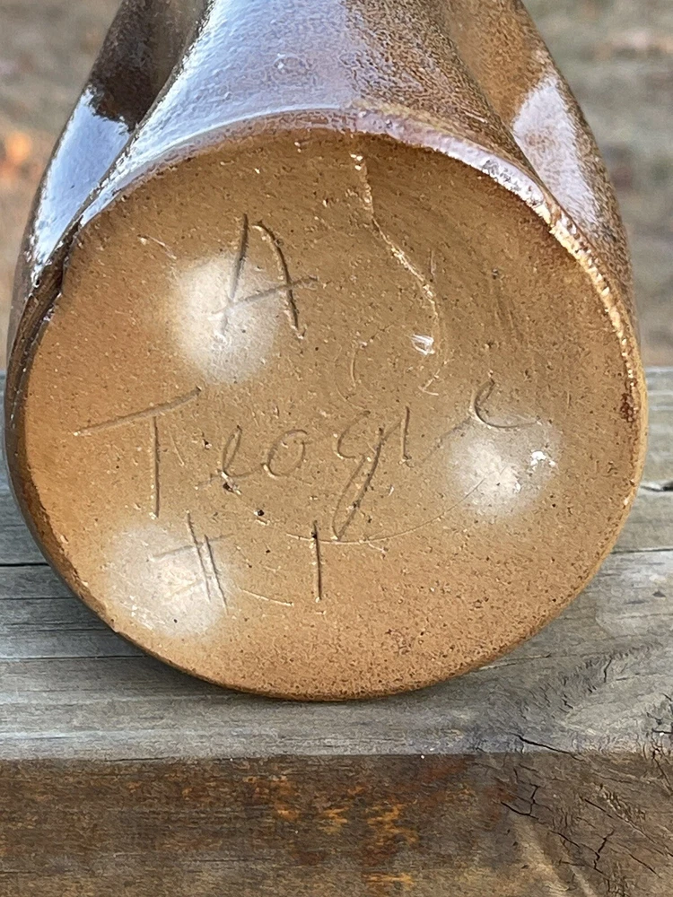 Nice traditional salt glazed pinch jug by North Carolina potter Archie Teague Signed #1 Not a crack on the bottom. It’s a spot where it was wired off the wheel while spinning. Shipped with care Any questions please ask.