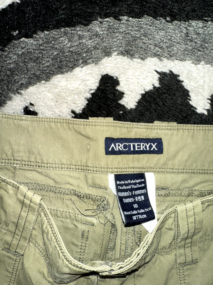 Arc'teryx Capri 3/4 Pants Olive, Worn - Size 10 - Unisex - Message for enquiries and offers - Aim to dispatch within 48 hrs of payment receive - All vintage garments are pre-owned/recycled.
