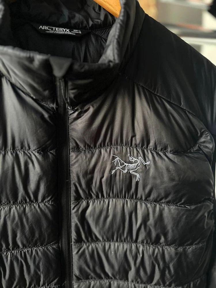 This Arcteryx Cerium Down Puffer Vest is a rare find for those who love high-quality outdoor clothing. The vest is made of durable nylon material and features a full zip closure, making it perfect for all seasons. It is wind-resistant and lightweight, making it ideal for activities such as cycling, hiking, and camping. The vest is also heated, providing warmth during cold weather, and has padded insulation for added comfort. The black color and check pattern add a stylish touch to the design, while the Arc'teryx logo accents the vest's quality. This vest is perfect for those who want to stay warm and comfortable while enjoying the outdoors.