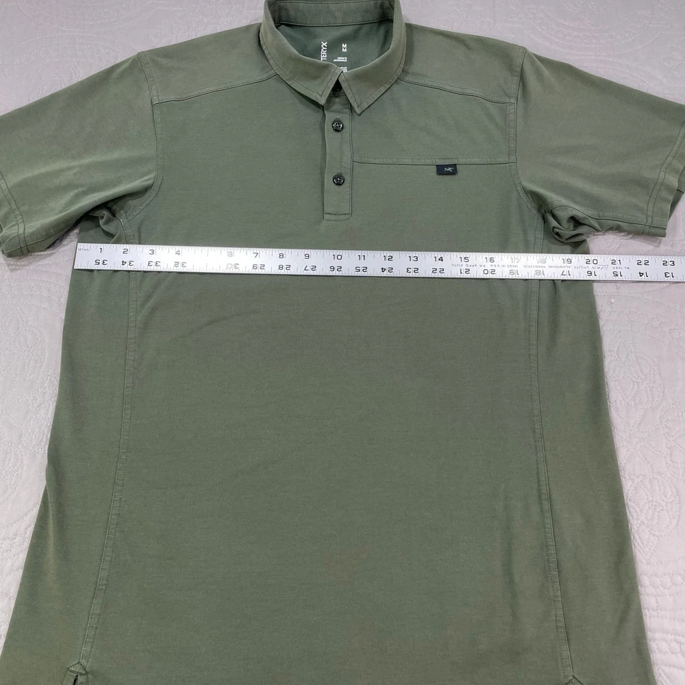 Arcteryx Polo Shirt Mens medium Green Captive Performance Tech Stretch Color---Green Stains or Holes---None, very good used condition Actual Measurements--- Please see pictures for actual measurements Please check out my other listings and bundle for a better price and shipping discount.
